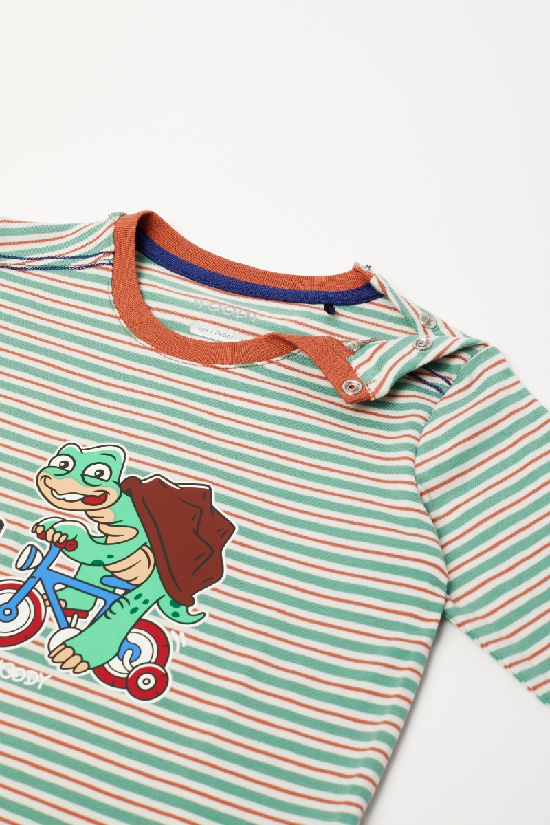 - Pamuklu Erkek Bebek Pijama-Plc - 914-Kaplumbağa Temalı Çizgili Turuncu