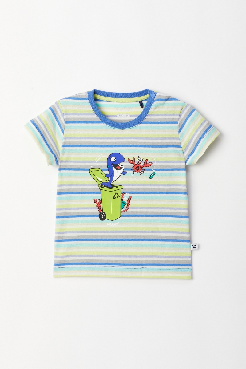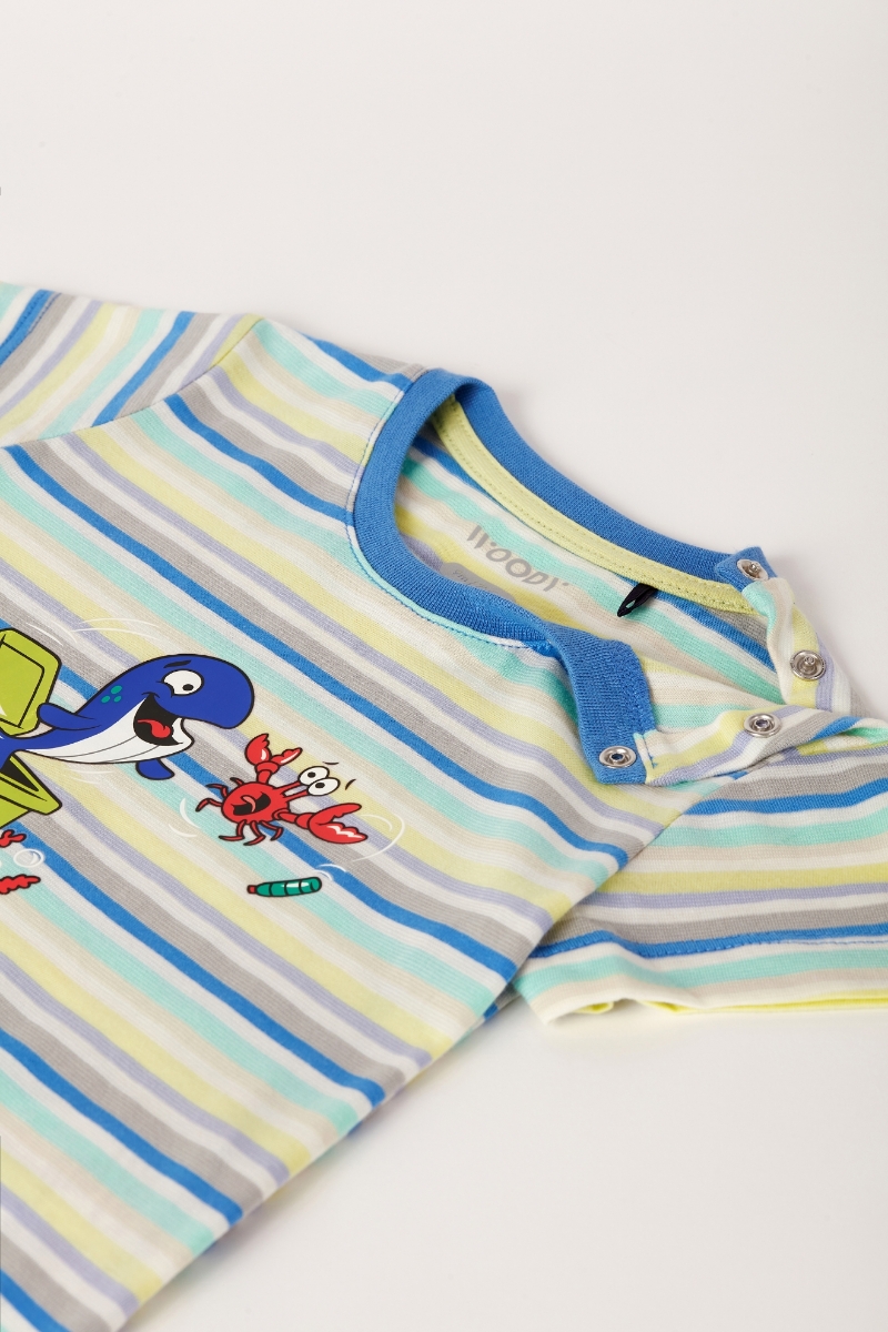 - Pamuklu Erkek Bebek Pijama-Pss - 904-Balina Temalı Çizgili Mavi