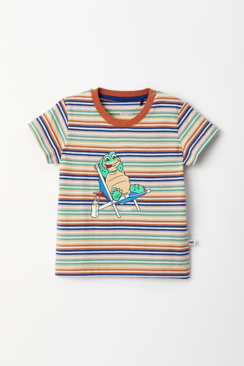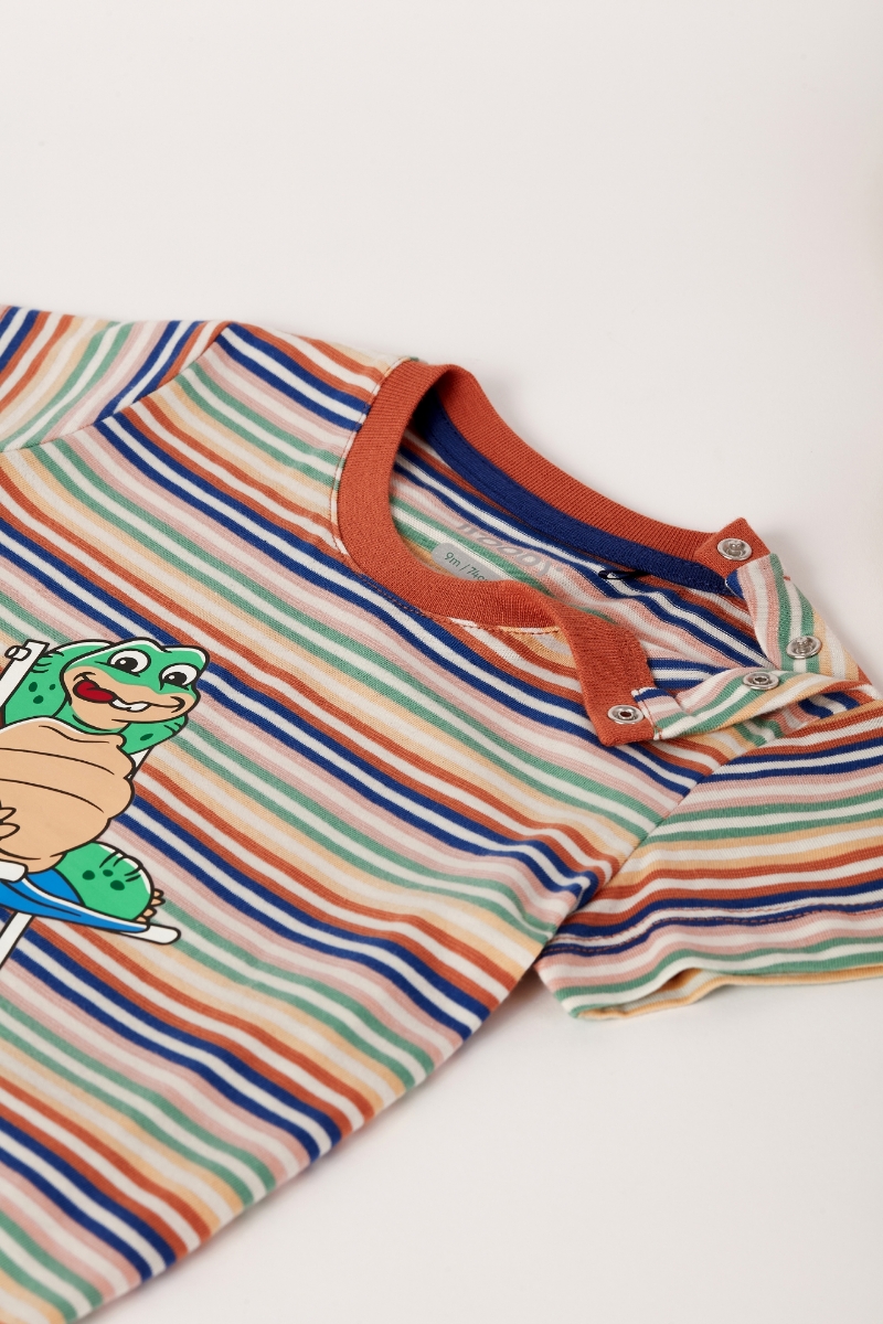 - Pamuklu Erkek Bebek Pijama-Pss - 906-Kaplumbağa Temalı Çizgili Turuncu