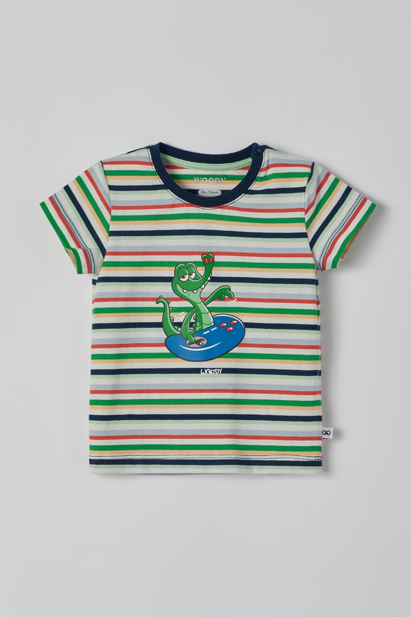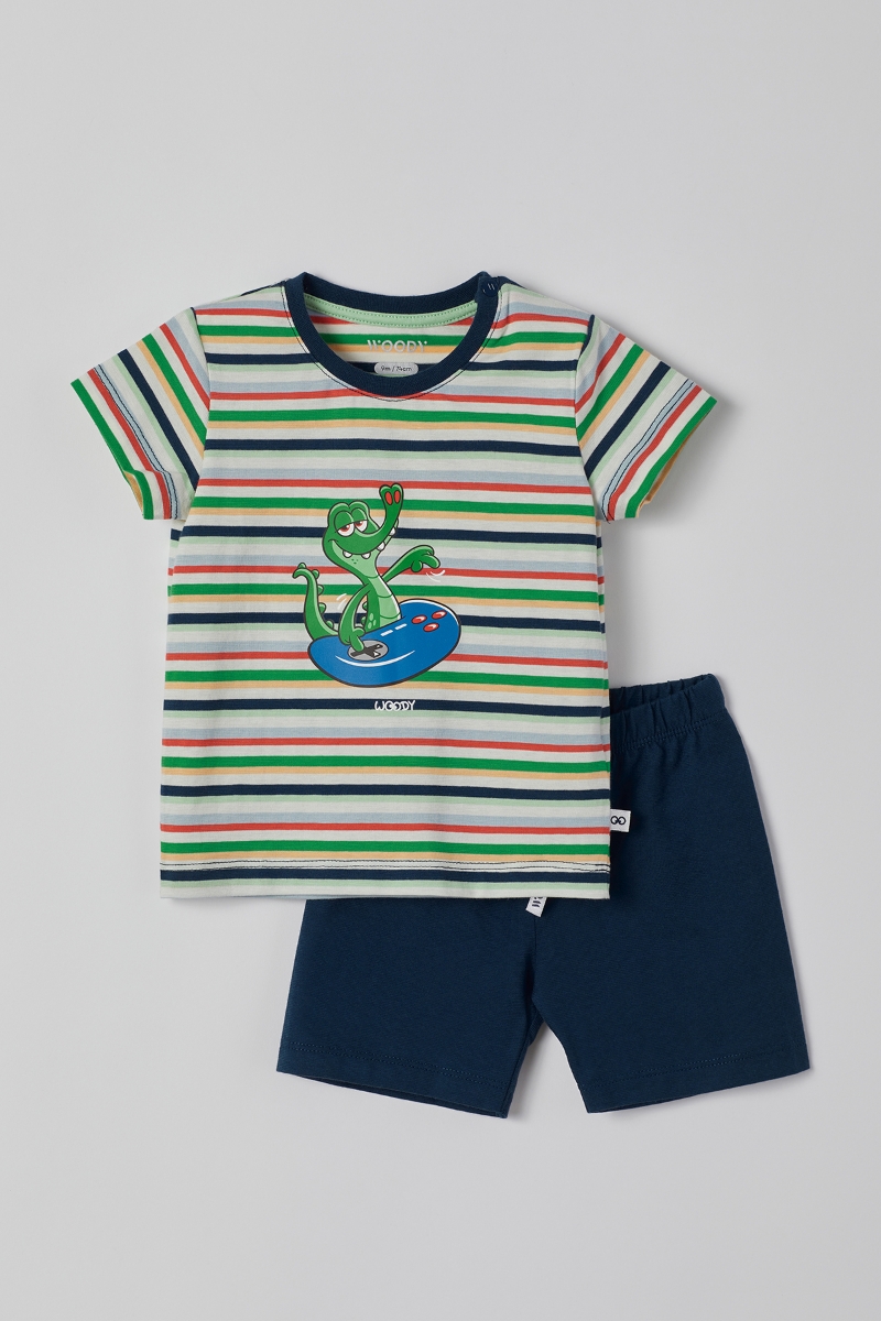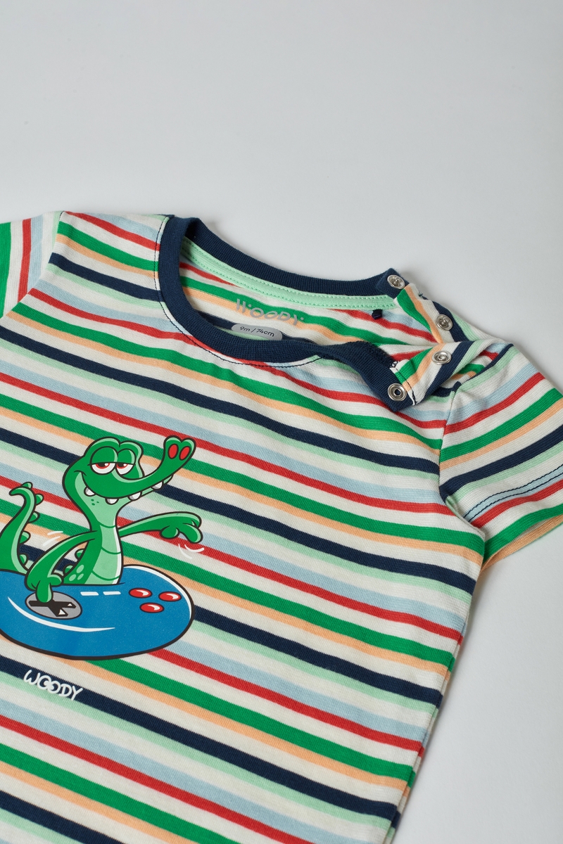 - Pamuklu Erkek Bebek Pijama-Pss - 910-Krokodil Temalı Çizgili Yeşil