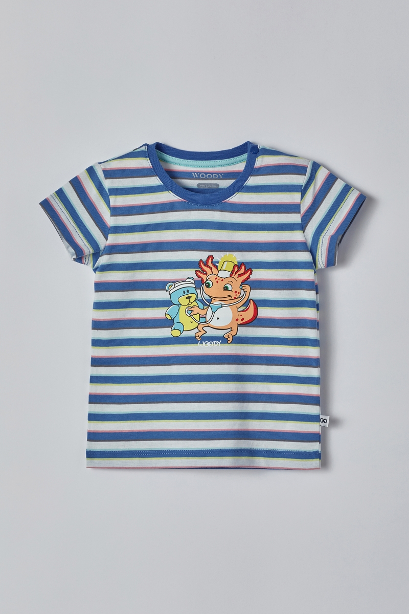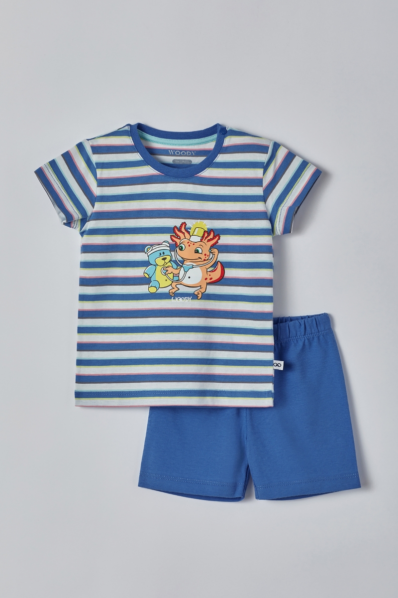 - Pamuklu Erkek Bebek Pijama-Pss - 987-Semender Temalı Çizgili