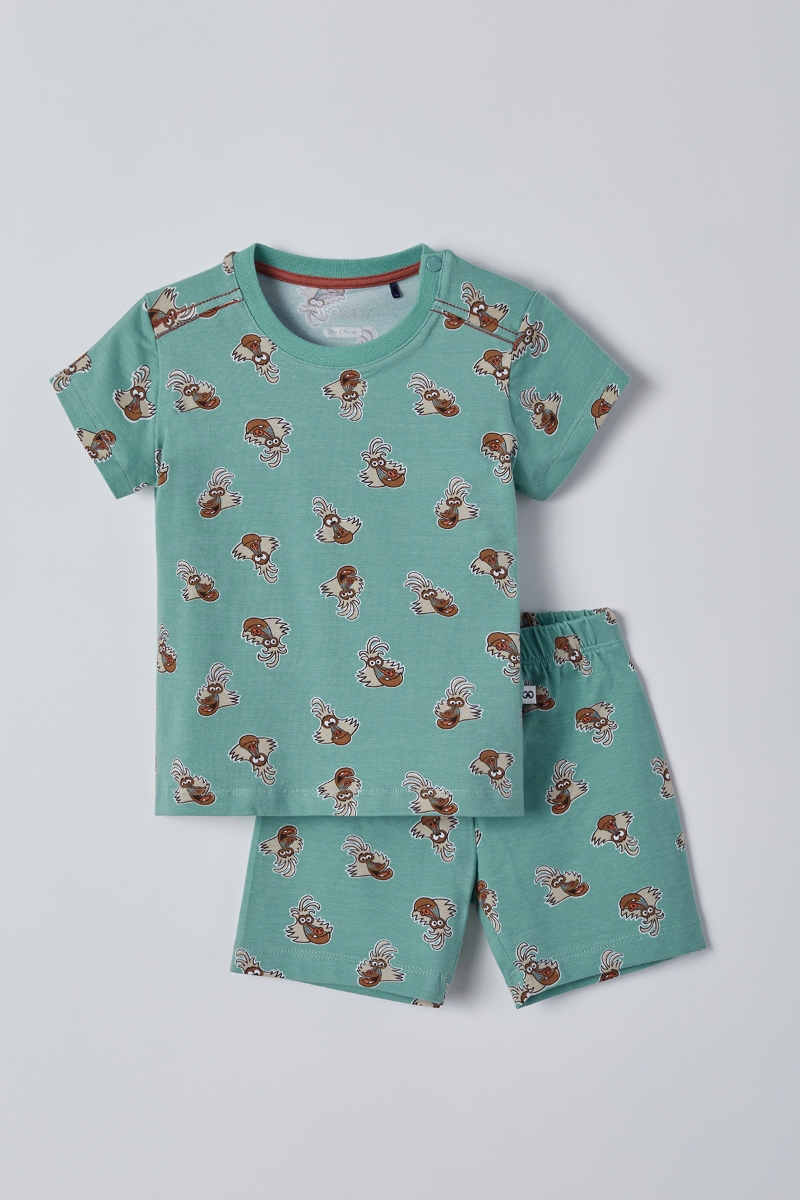 - Pamuklu Erkek Bebek Pijama-Pza - 979-Mandril Baskılı Yeşil