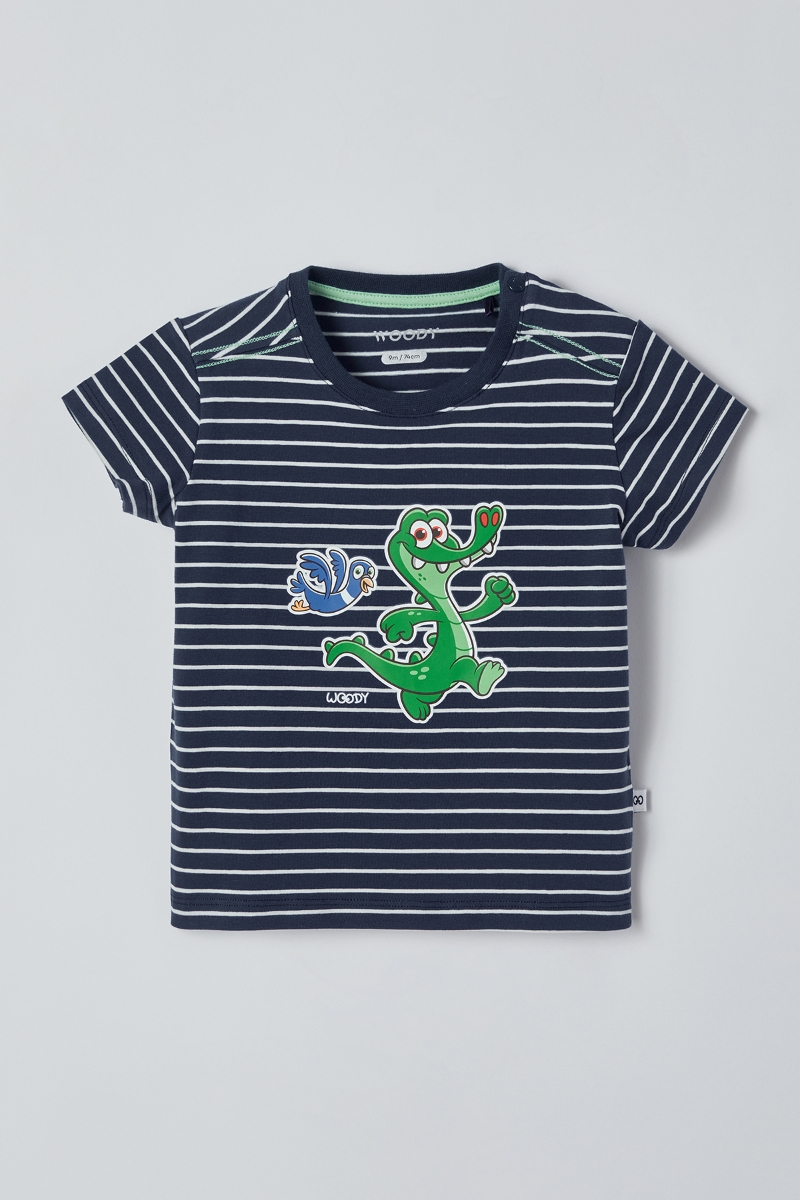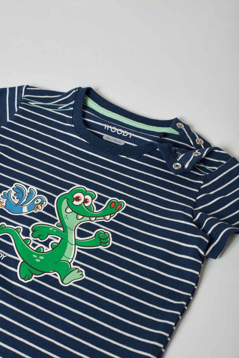 - Pamuklu Erkek Bebek Pijama-Pza - 981-Krokodil Temalı Lacivert Çizgili