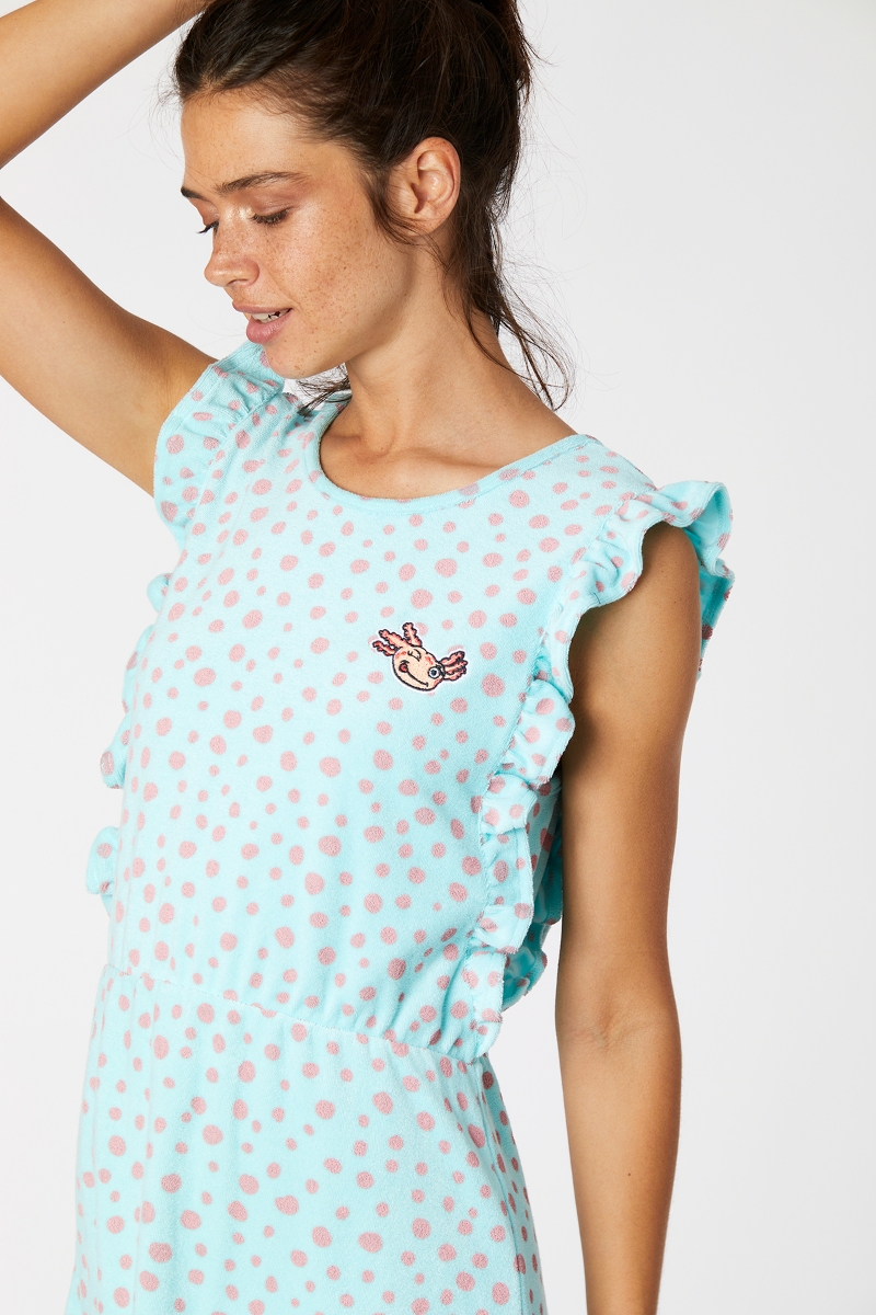 - Pamuklu Havlu Elbise-Dta - 918-Semender Baskılı Mavi