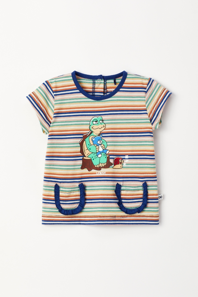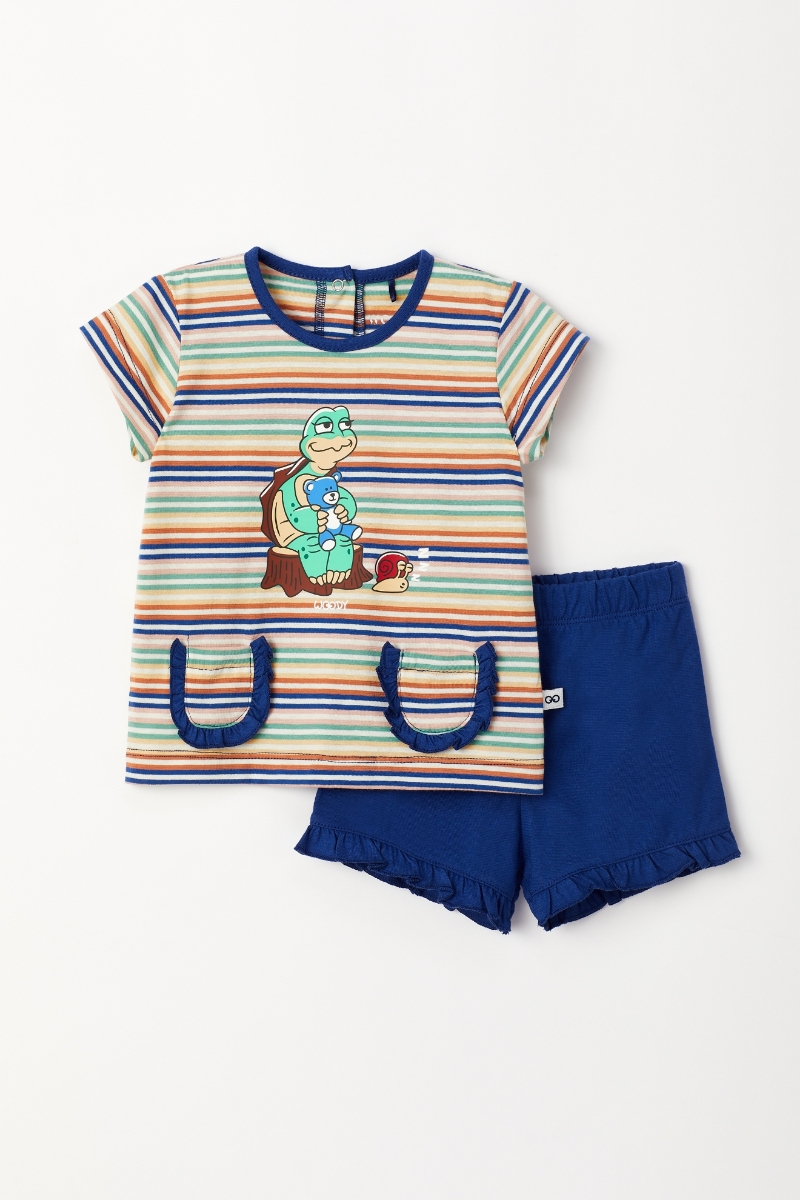 - Pamuklu Kız Bebek Pijama-Psg - 906-Kaplumbağa Temalı Çizgili Turuncu