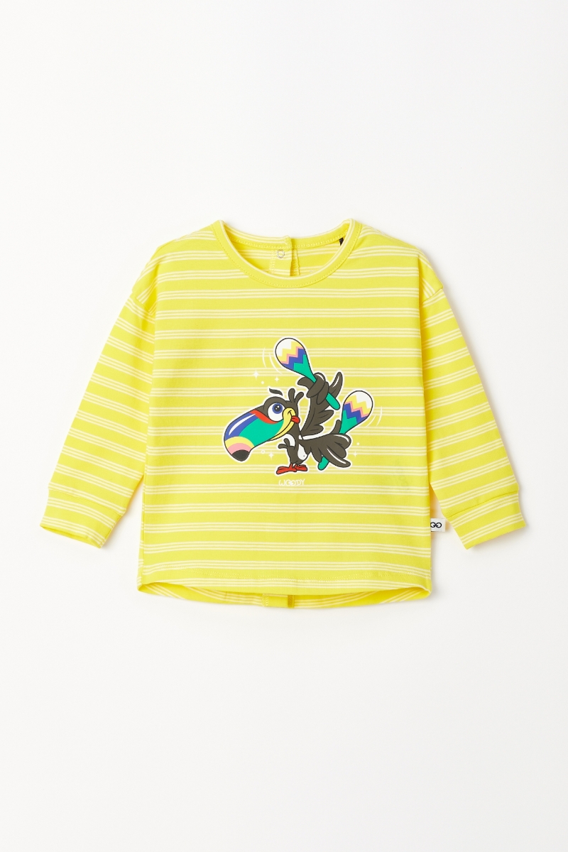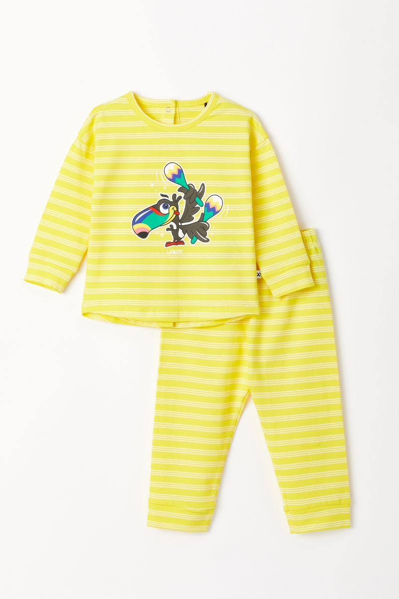 - Pamuklu Kız Bebek Pijama-Pzb - 918-Tukan Temalı Çizgili Sarı