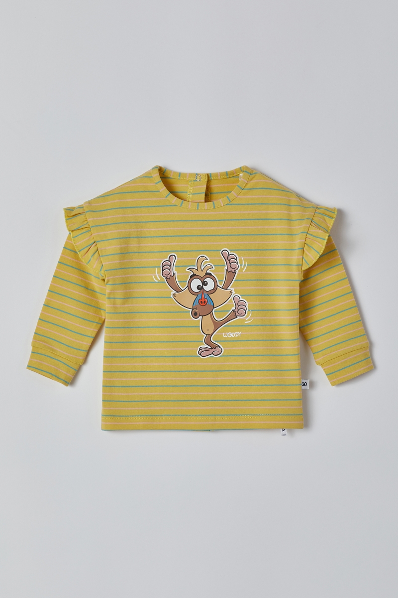 - Pamuklu Kız Bebek Pijama-Pzb - 964-Mandril Temalı Çizgili Sarı