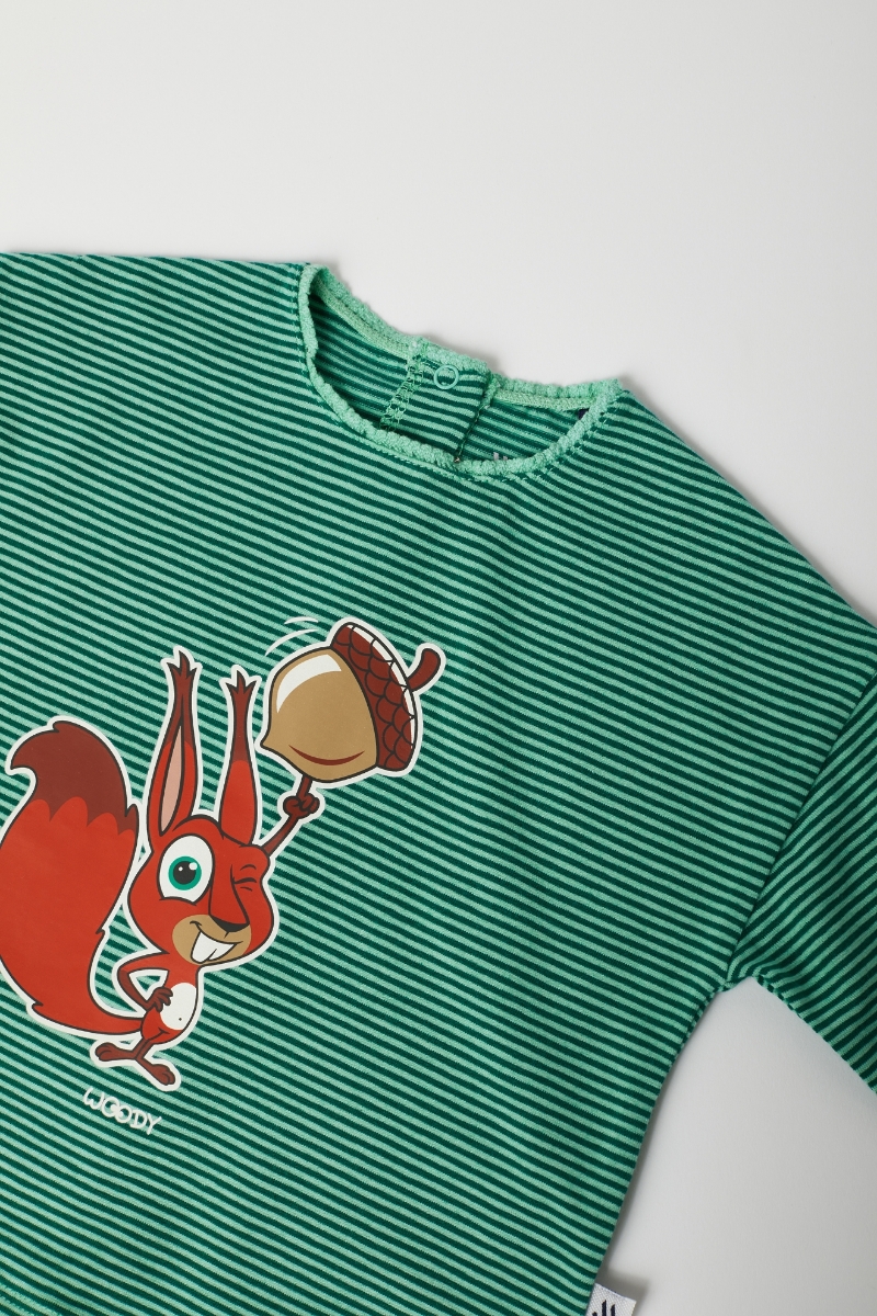 - Pamuklu Kız Bebek Pijama-Pzg - 915-Sincap Temalı Çizgili Yeşil