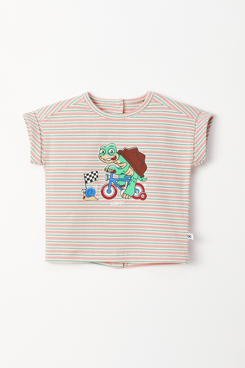 - Pamuklu Kız Bebek Pijama-Pzg - 917-Kaplumbağa Temalı Çizgili Pembe