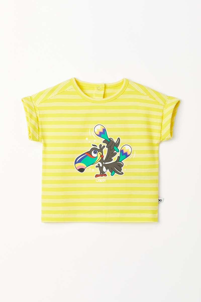 - Pamuklu Kız Bebek Pijama-Pzg - 918-Tukan Temalı Çizgili Sarı