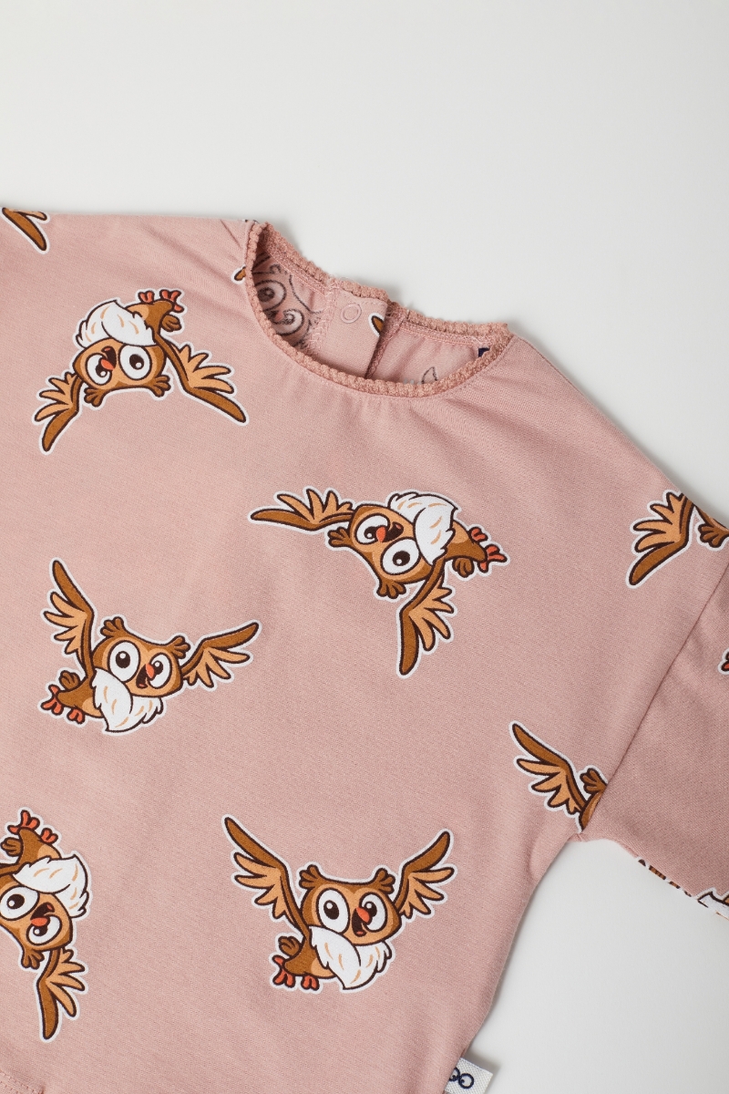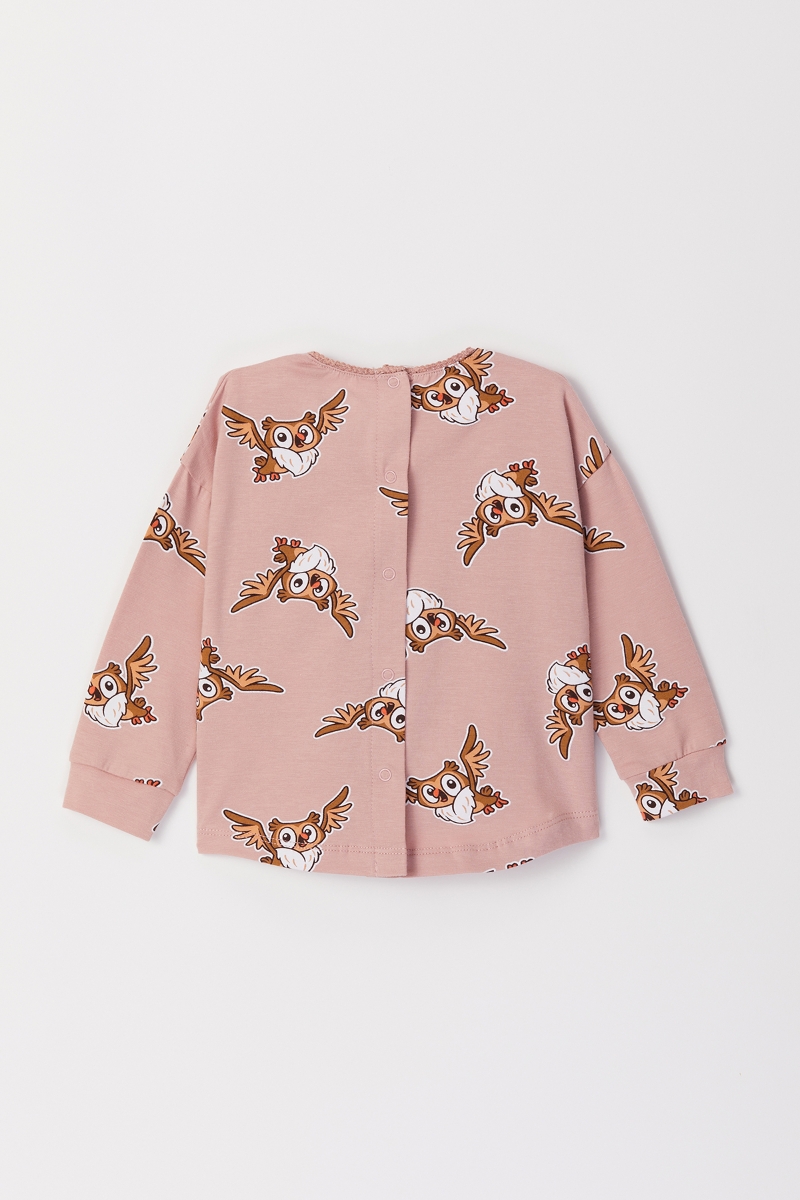 - Pamuklu Kız Bebek Pijama-Pzg - 932-Baykuş Baskılı Vizon Pembe