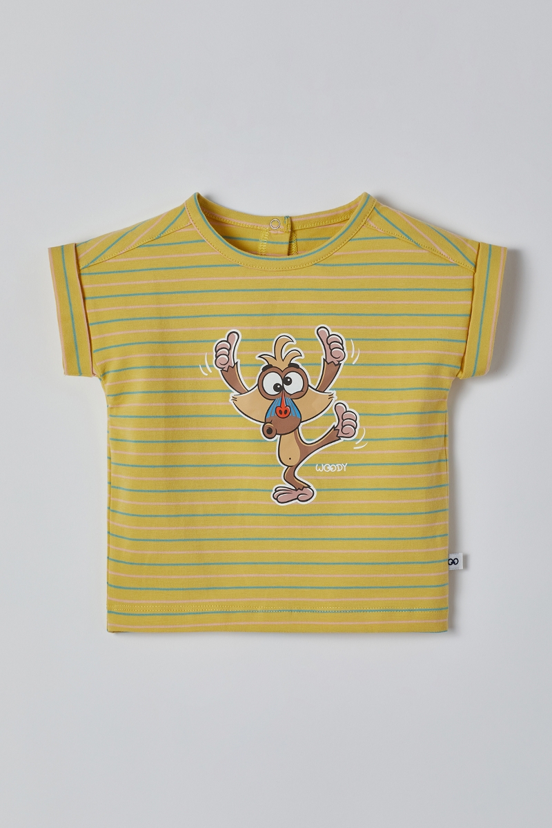 - Pamuklu Kız Bebek Pijama-Pzg - 964-Mandril Temalı Çizgili Sarı