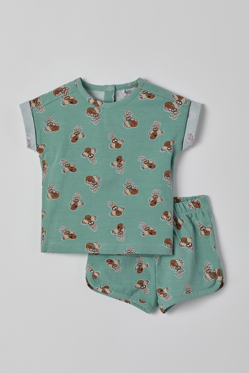 - Pamuklu Kız Bebek Pijama-Pzg - 979-Mandril Baskılı Yeşil