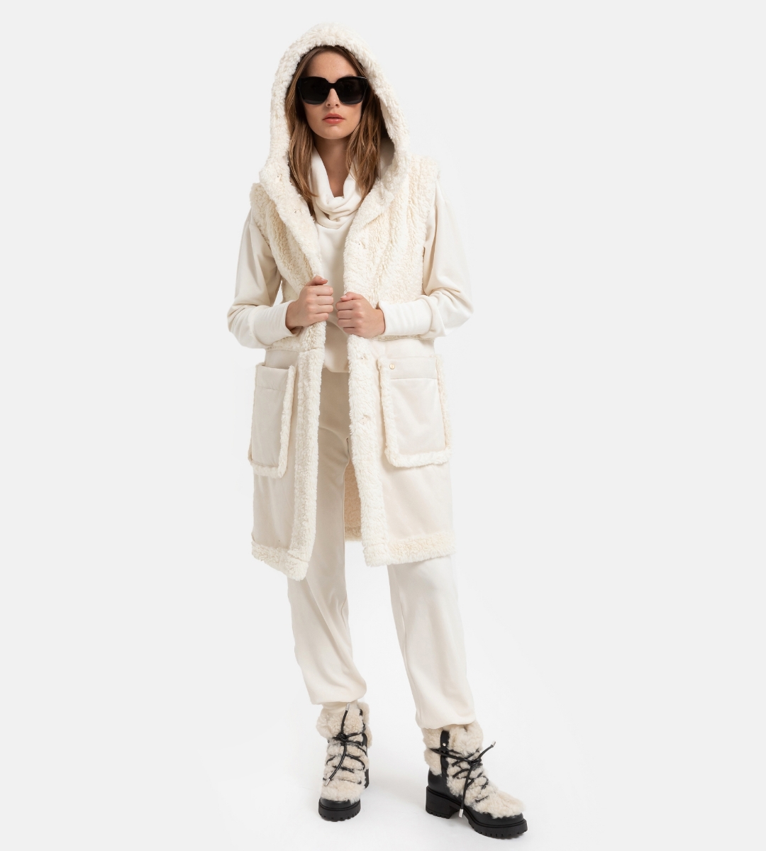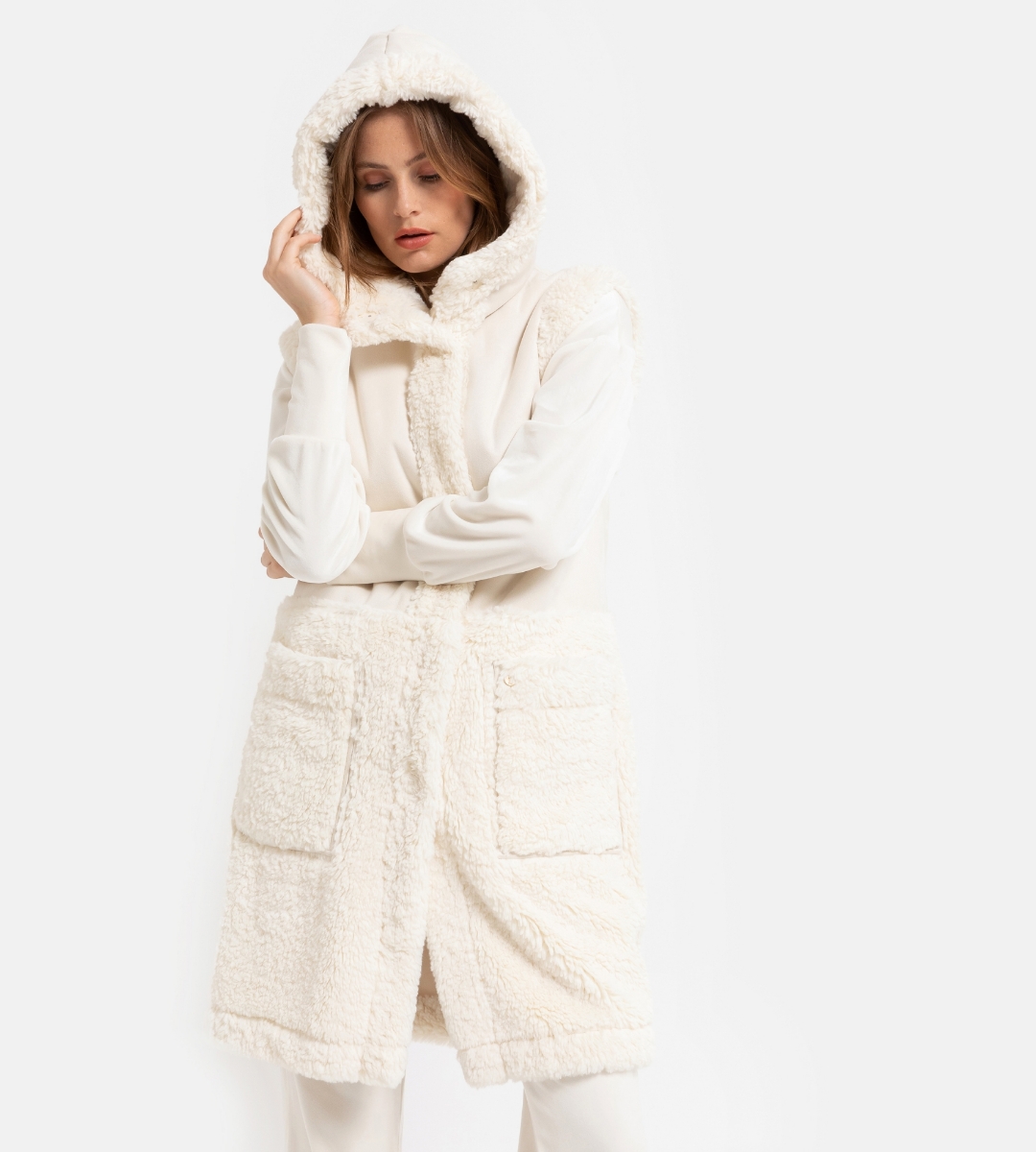 - Parça cep detaylı yapay kürk yelek-Tnc - 169-Vanilya Rengi