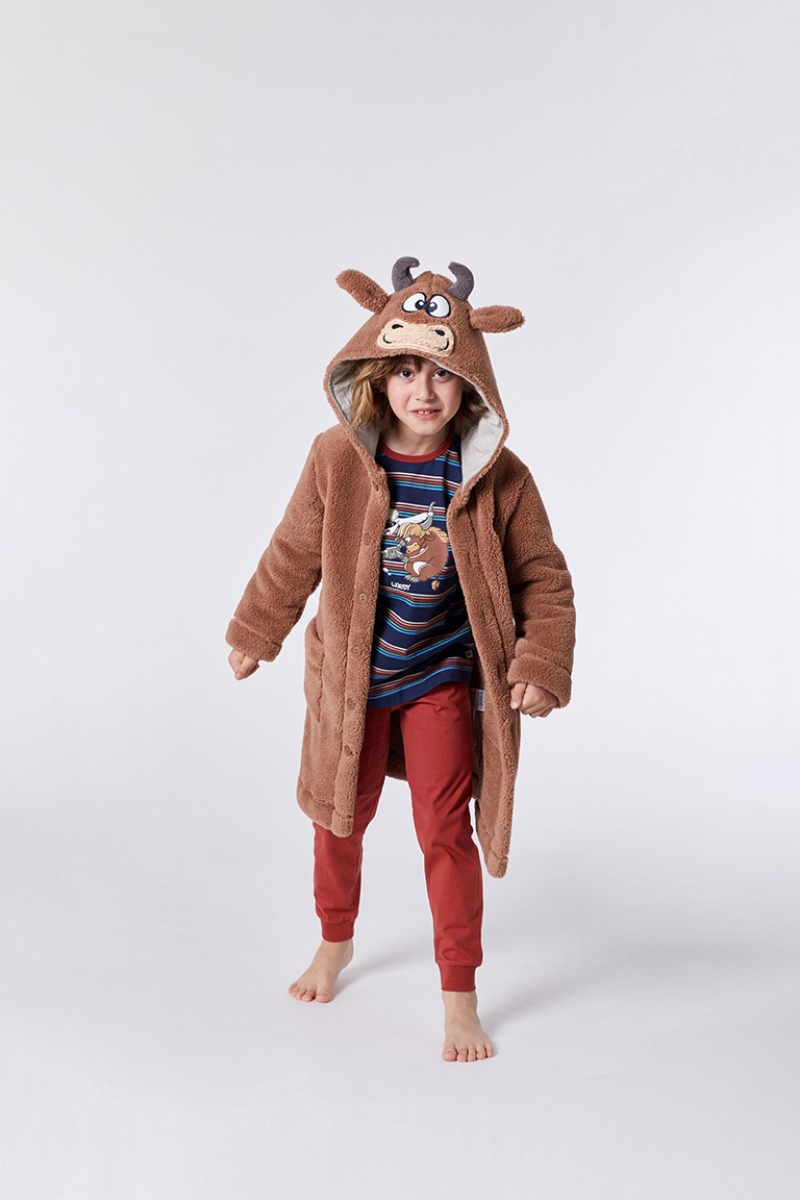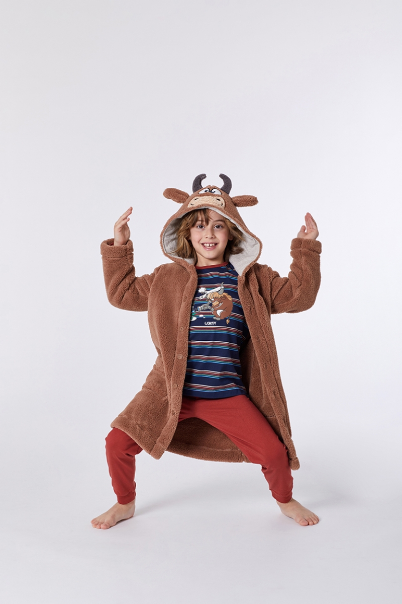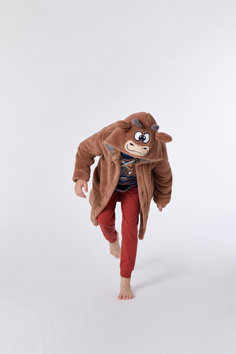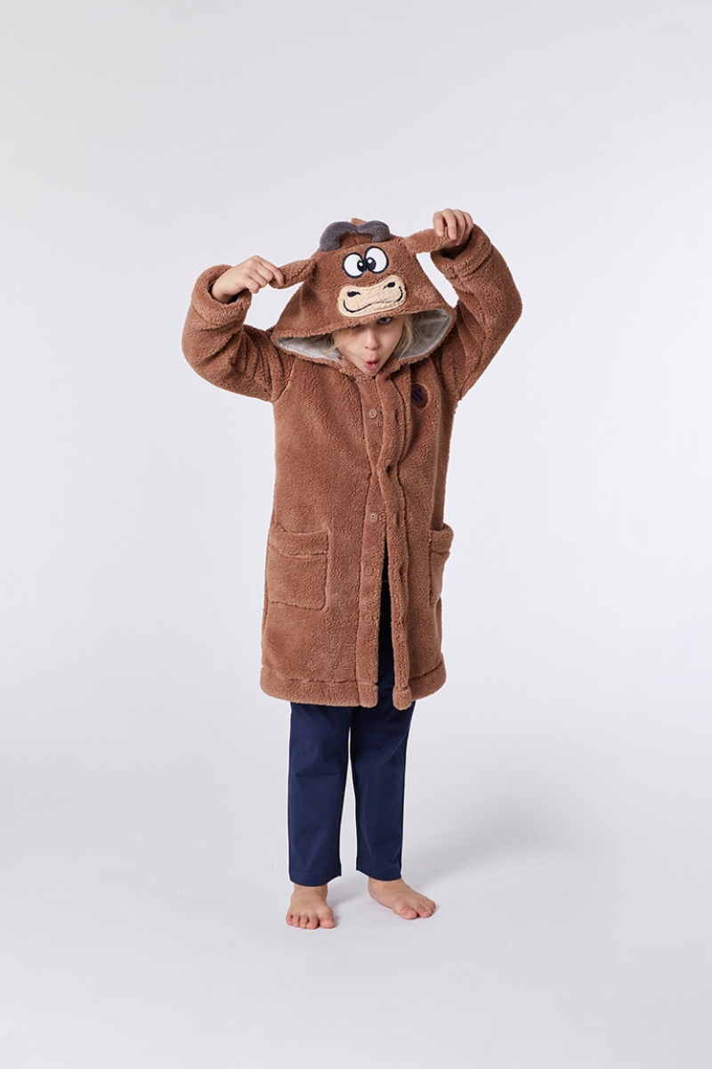 - 2-8 Yaş Yumuşak Bornoz Sabahlık-Rom - 276-Boğa Temalı Açık Kahverengi