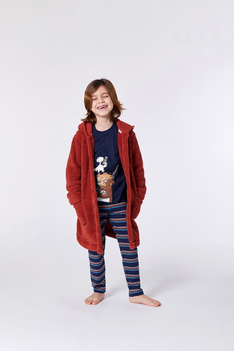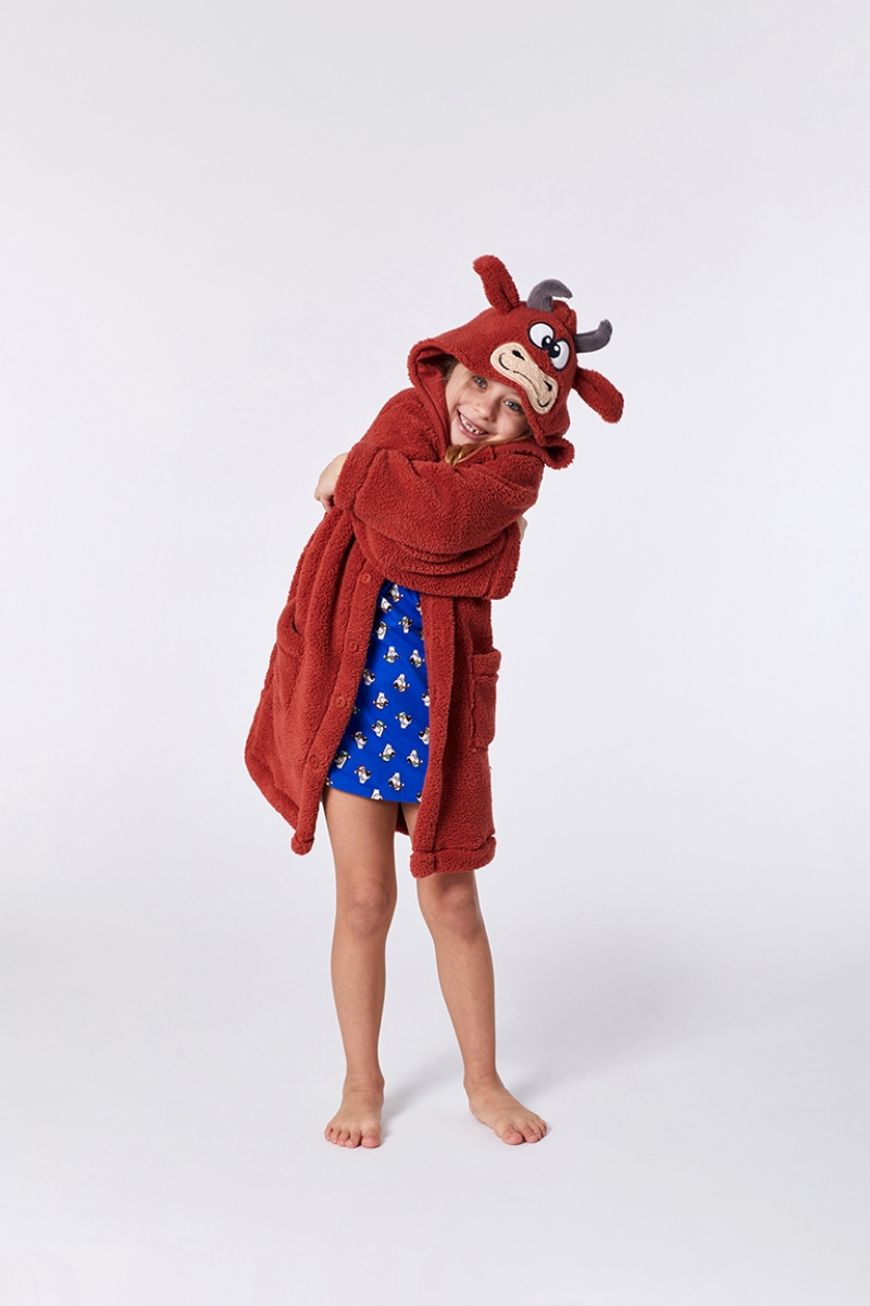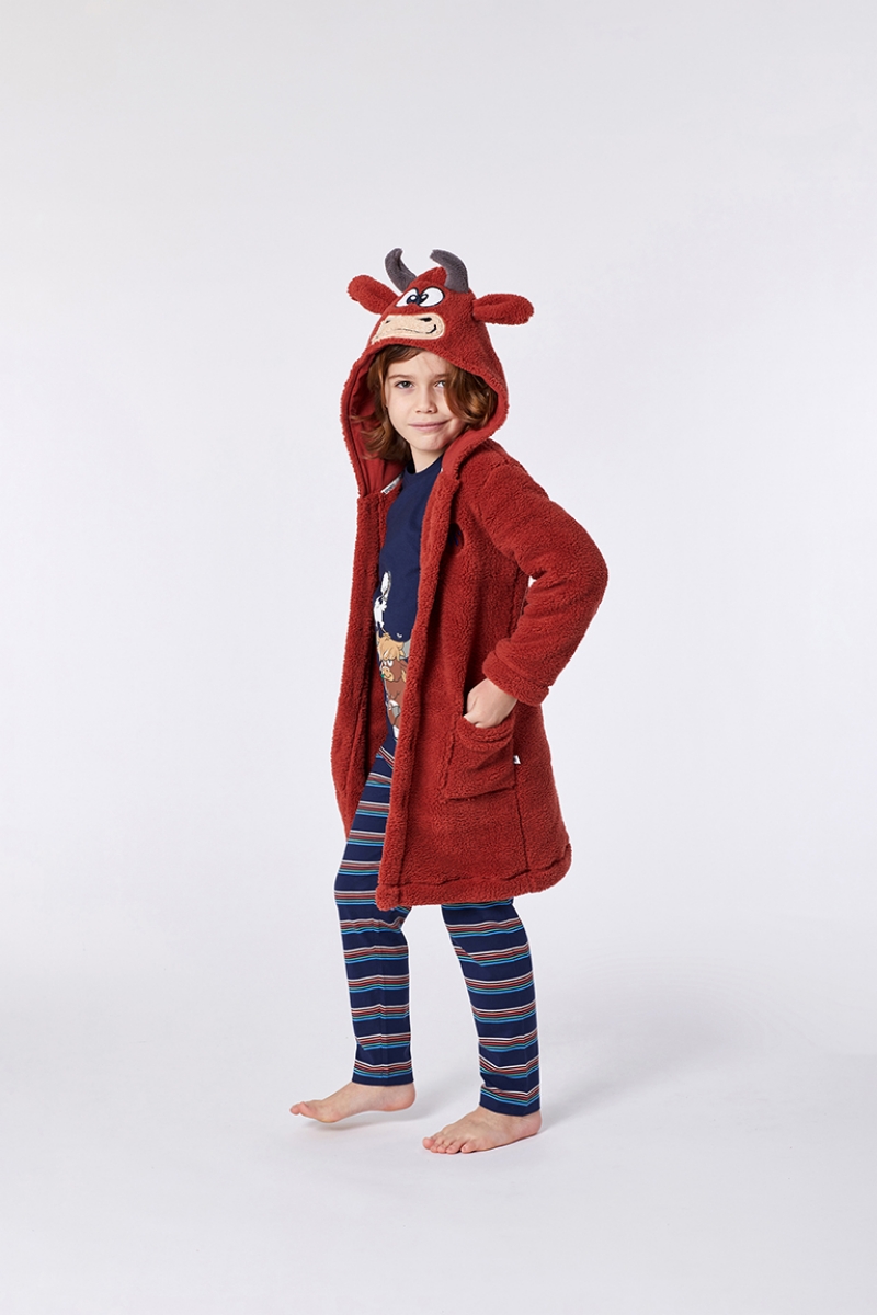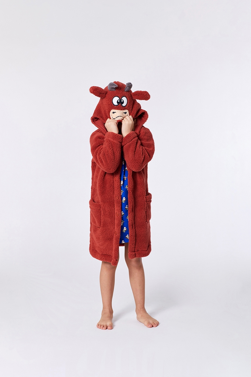 - 10-16 Yaş Yumuşak Bornoz Sabahlık-Rom - 461-Boğa Temalı Çiftlik Kırmızısı