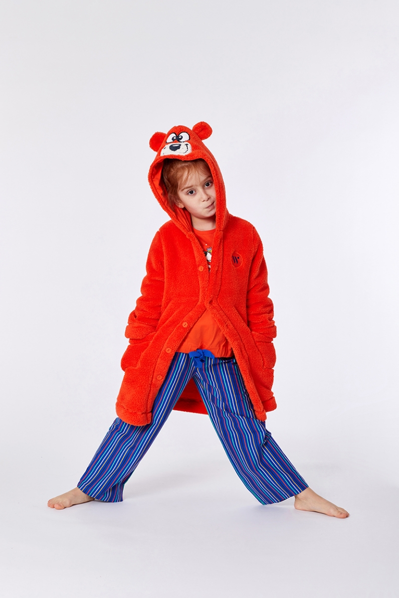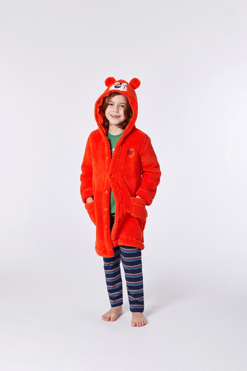 - 2-8 Yaş Yumuşak Bornoz Sabahlık-Rom - 546-Kutup Ayısı Temalı Mandalin Turuncusu