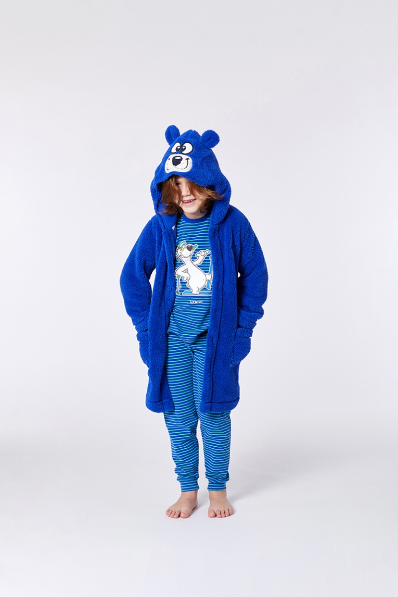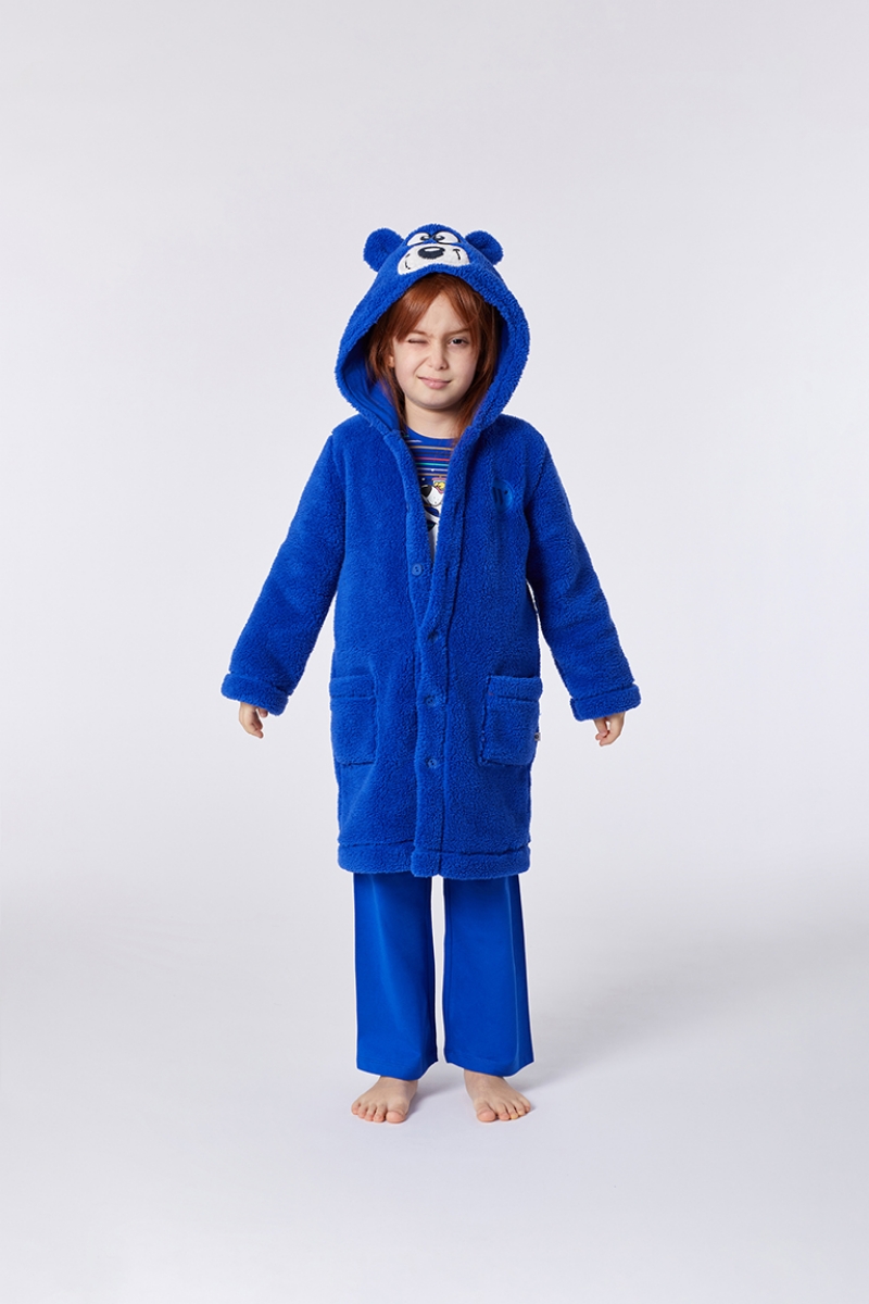 - 2-8 Yaş Yumuşak Bornoz Sabahlık-Rom - 852-Kutup Ayısı Temalı İndigo Mavi