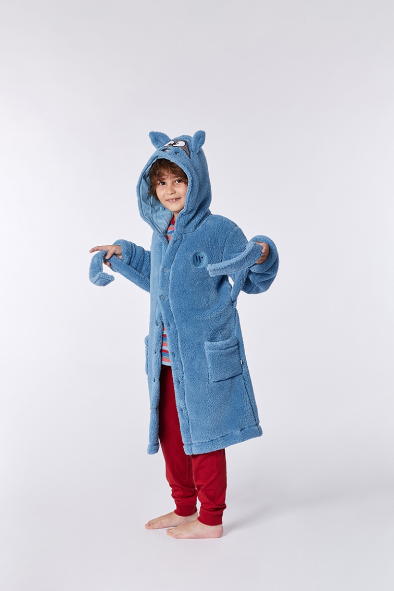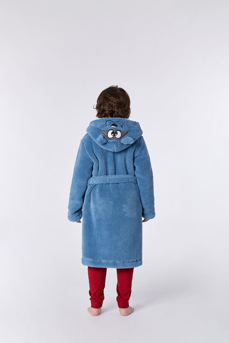 - 2-8 Yaş Yumuşak Bornoz Sabahlık-Rom - 858-Rakun Temalı Duman Mavisi