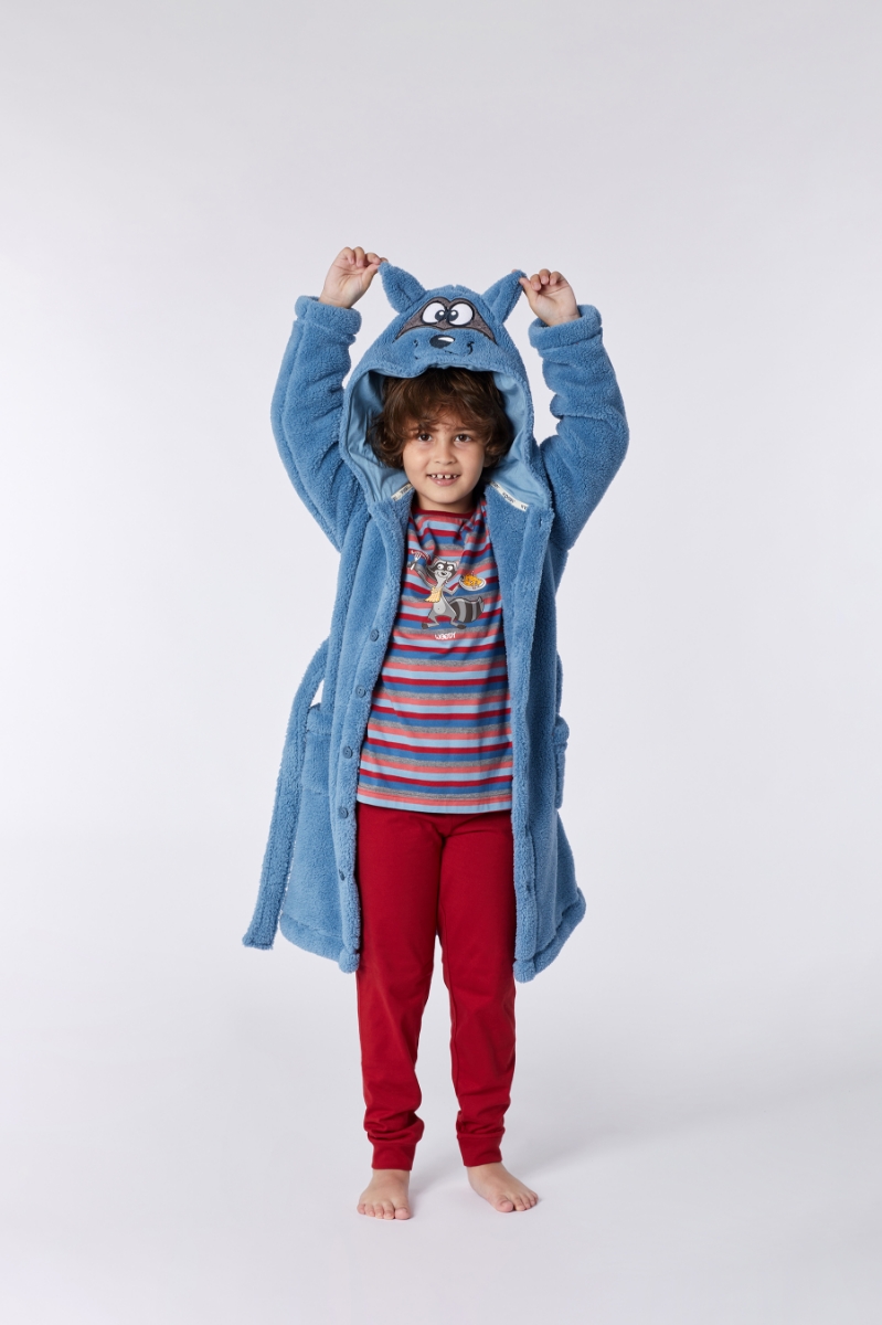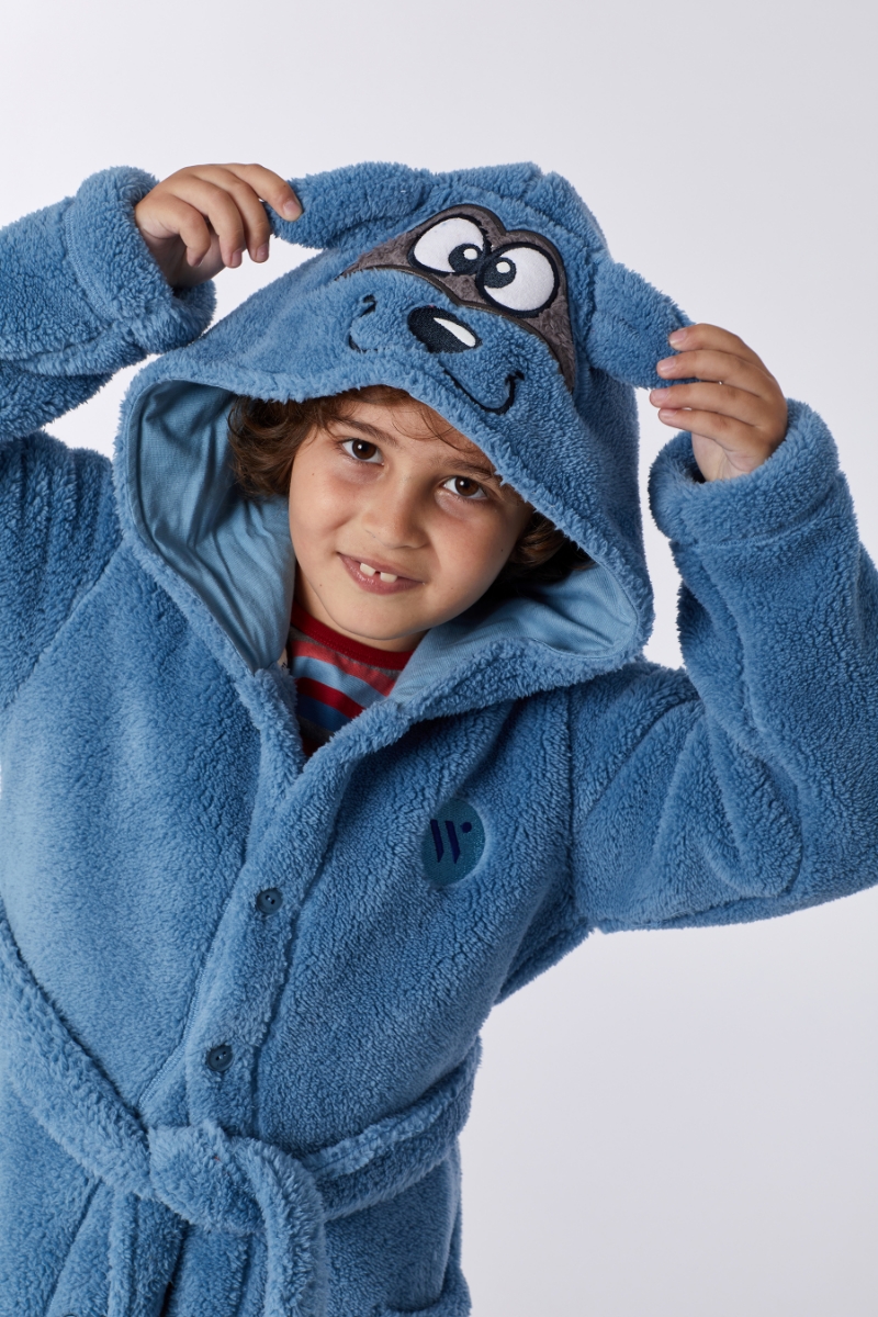 - 10-16 Yaş Yumuşak Bornoz Sabahlık-Rom - 858-Rakun Temalı Duman Mavisi