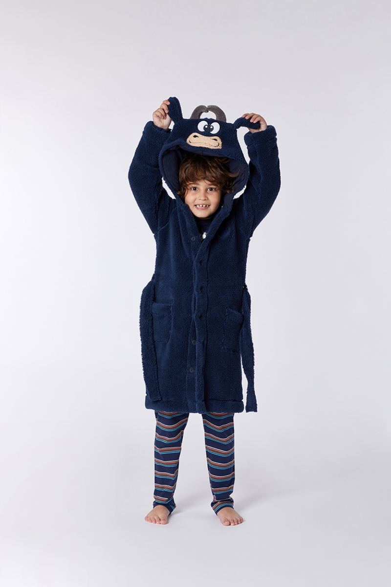 - 2-8 Yaş Yumuşak Bornoz Sabahlık-Rom - 885-Boğa Temalı Koyu Lacivert