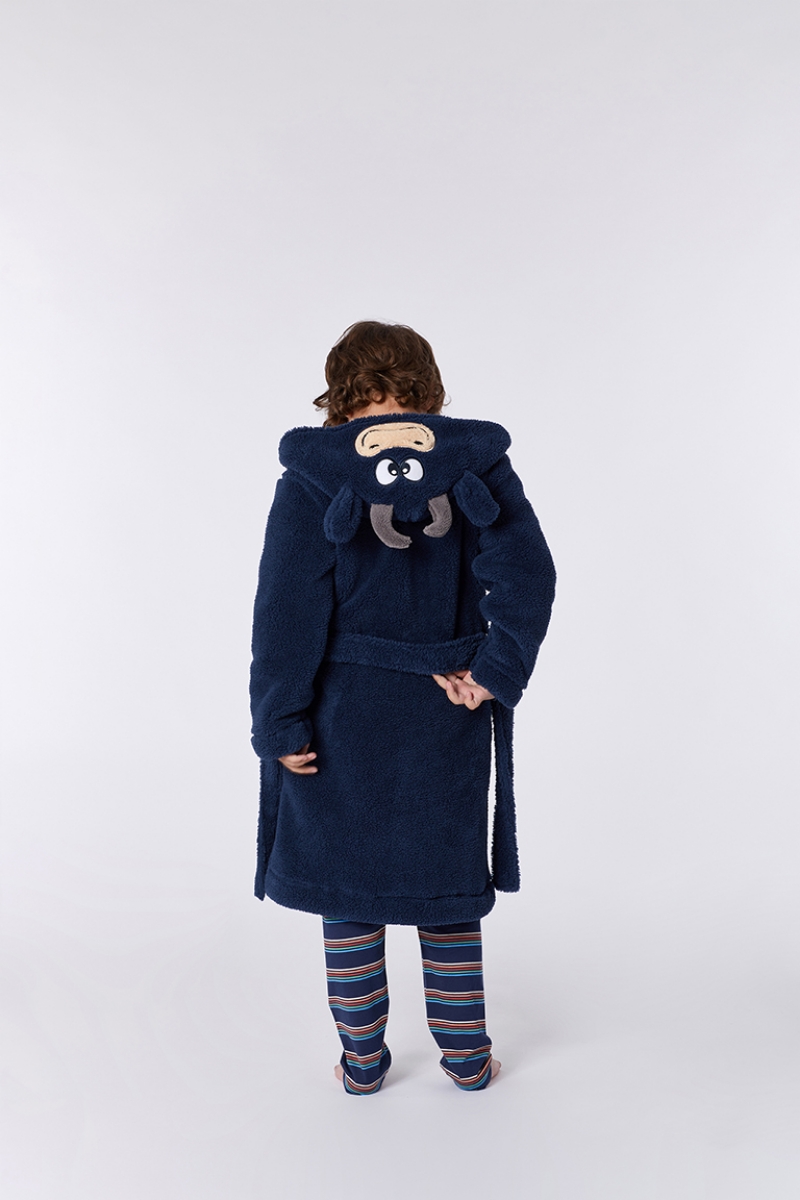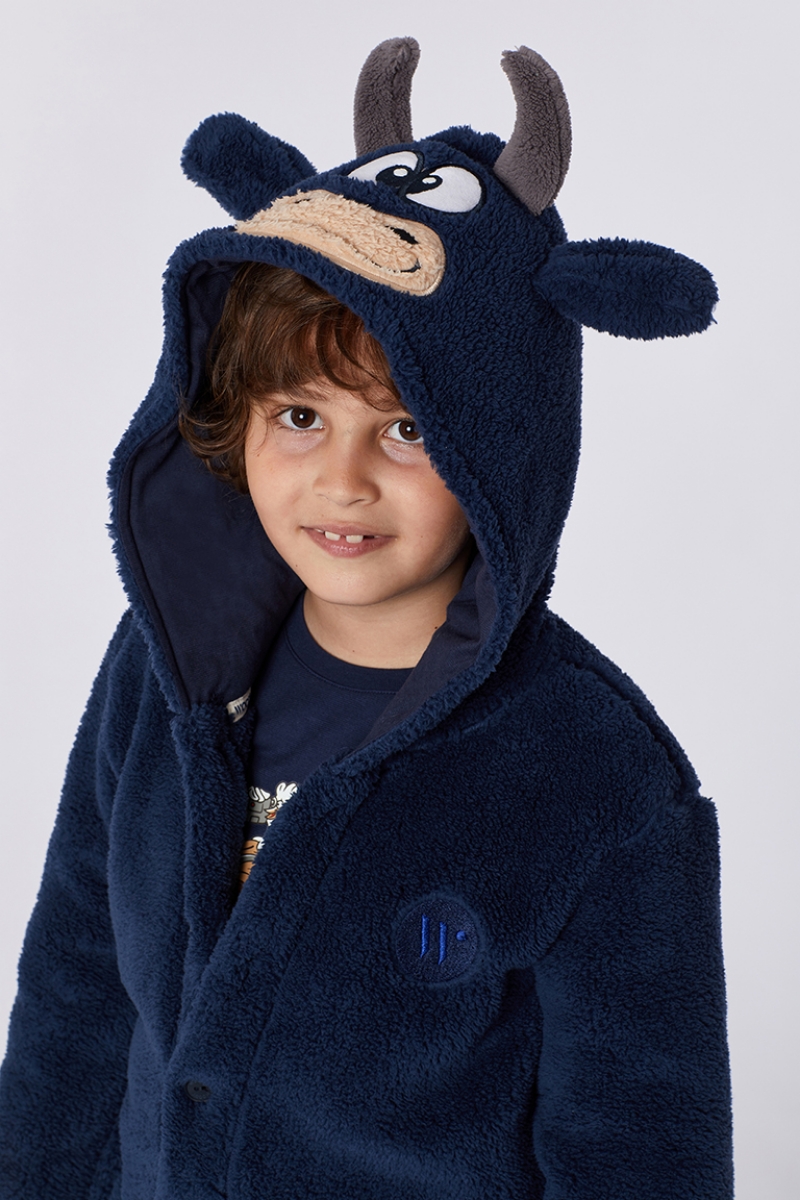 - 10-16 Yaş Yumuşak Bornoz Sabahlık-Rom - 885-Boğa Temalı Koyu Lacivert
