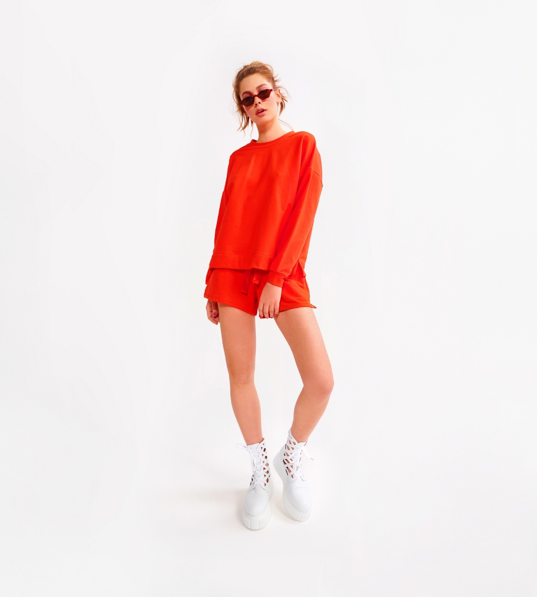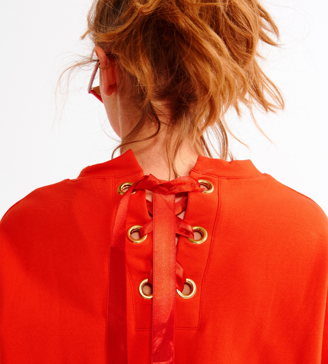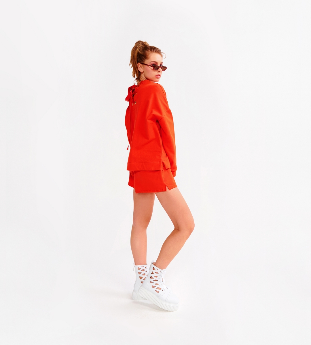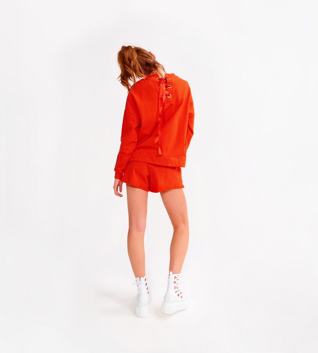 - Sırtı kurdele detaylı sweatshirt-Lhg - 433-Nar Çiçeği