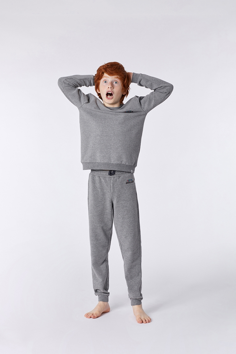 Sweatshirt-Qld - 125-Rakun Temalı Gri Melanj