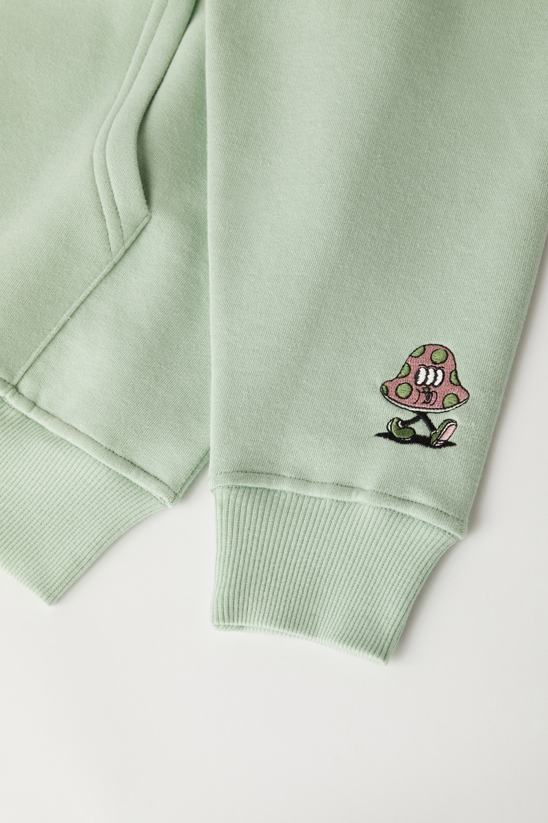 Unisex Fermuarlı ve Kapüşonlu Sweatshirt-Sld - 711-Küf Yeşili