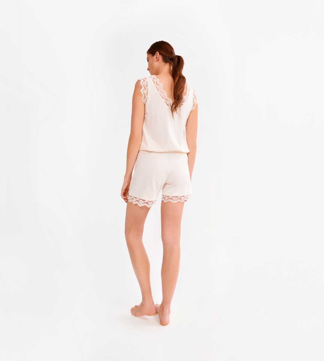 - V yaka dantel detaylı bluz-Lph - 112-Ekru