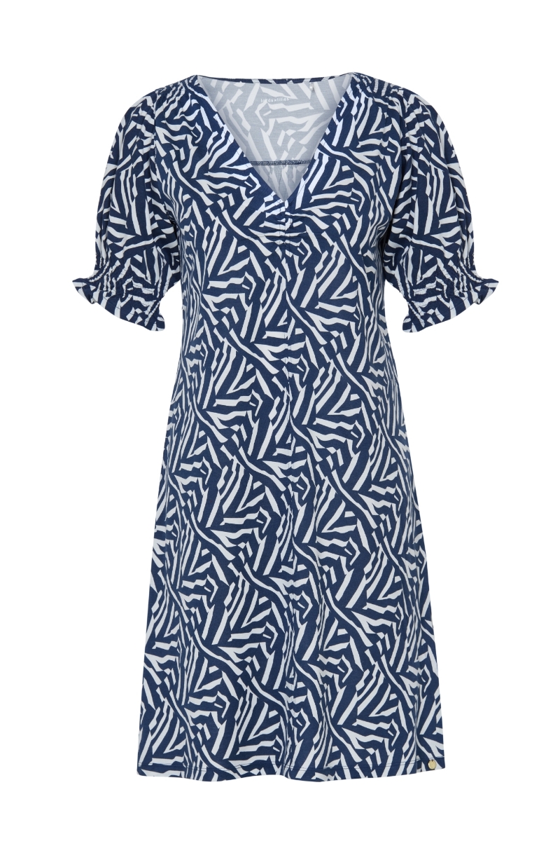- V yaka detaylı karpuz kol elbise-Xdg - 920-Zebra Baskılı