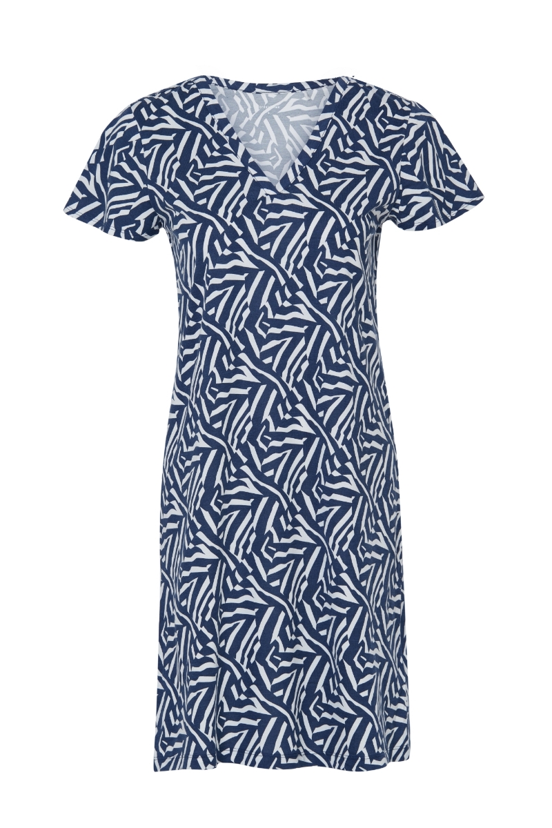 - V yaka detaylı kısa kol elbise-Xdf - 920-Zebra Baskılı