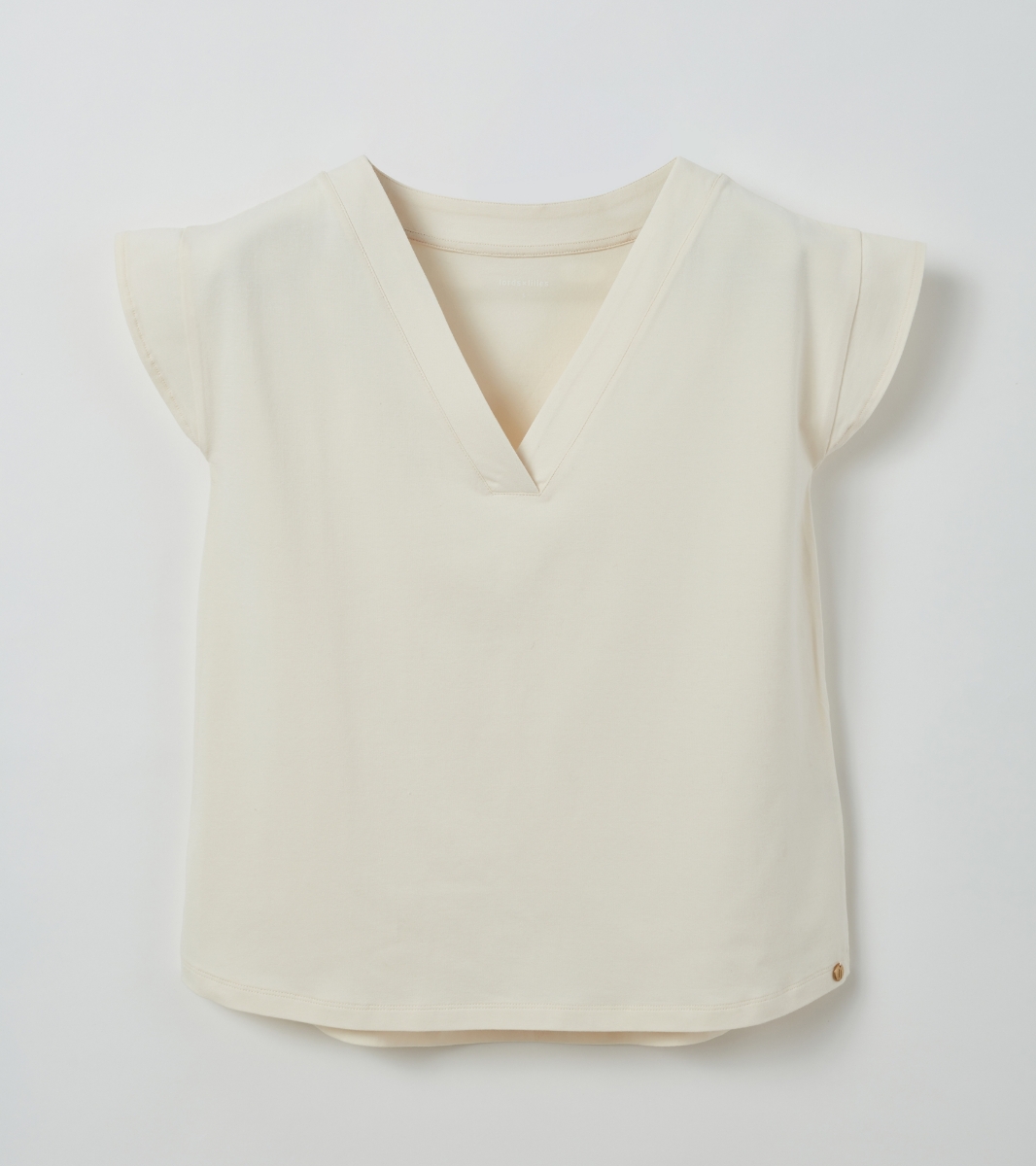 - V yaka düşük kol bluz-Lhc - 112-Ekru