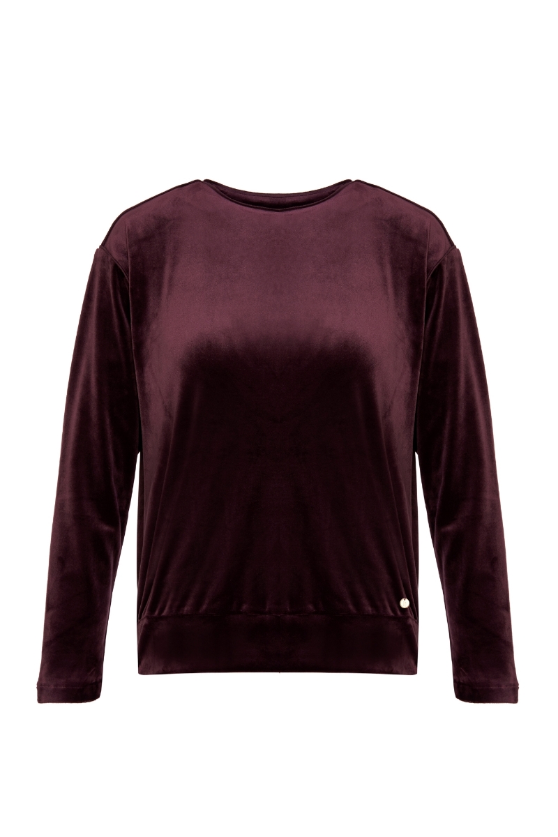 - V yaka kadife bluz-Thb - 333-Şarap Rengi