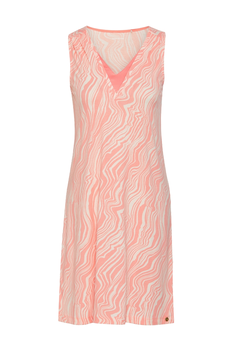 - V Yaka Kolsuz Elbise-Xdc - 982-Ebruli Desenli Ekru