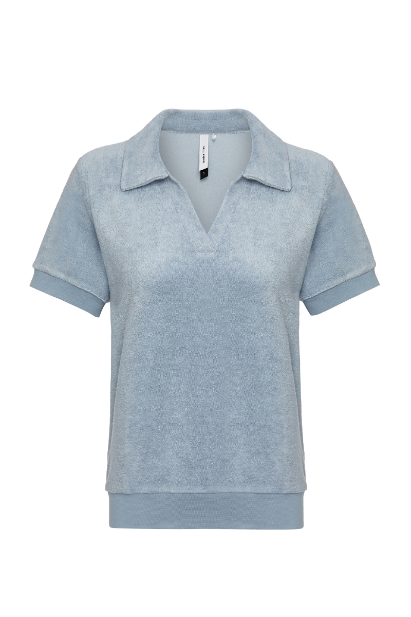 - V Yaka Terry Tişört-The - 800-Kül Mavisi