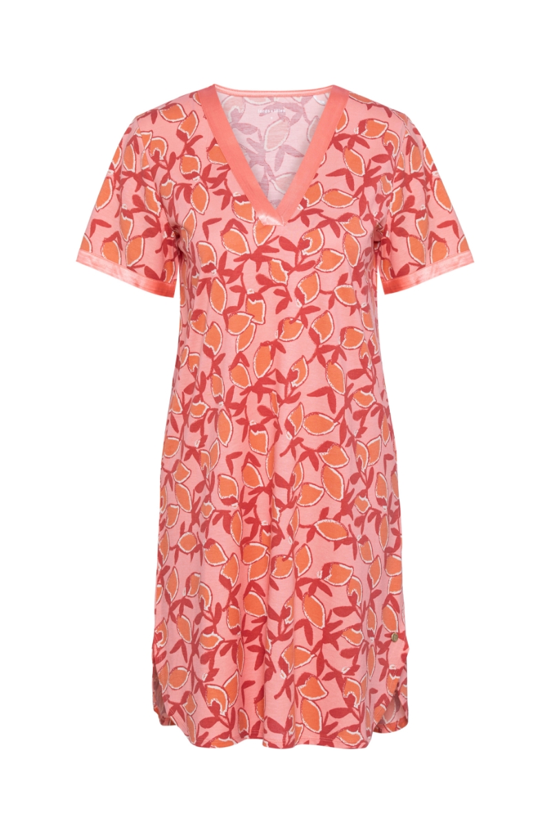 - V Yaka Yırtmaçlı Elbise-Xdf - 984-Limon Baskılı Turuncu
