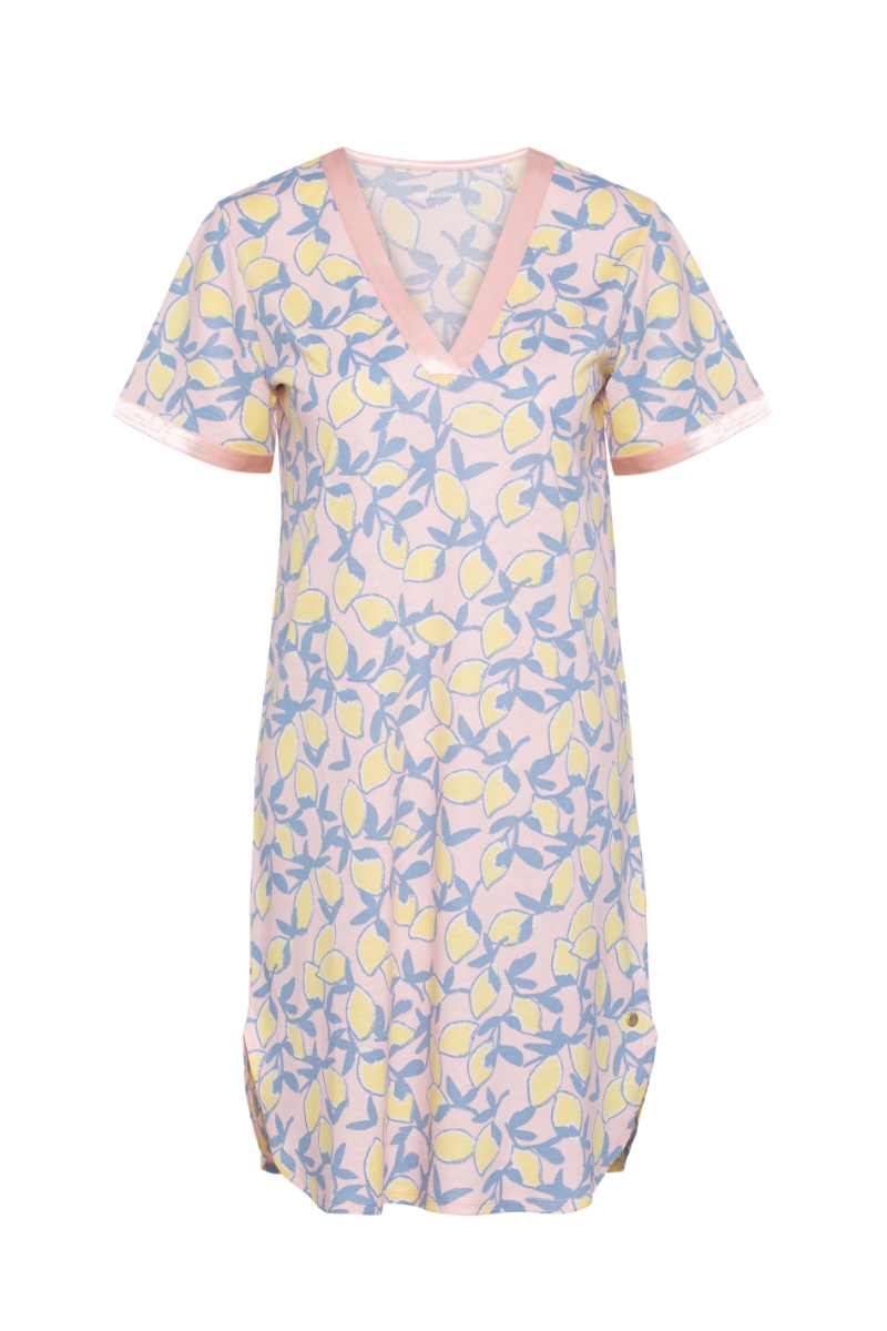 - V Yaka Yırtmaçlı Elbise-Xdf - 985-Limon Baskılı Yeşil