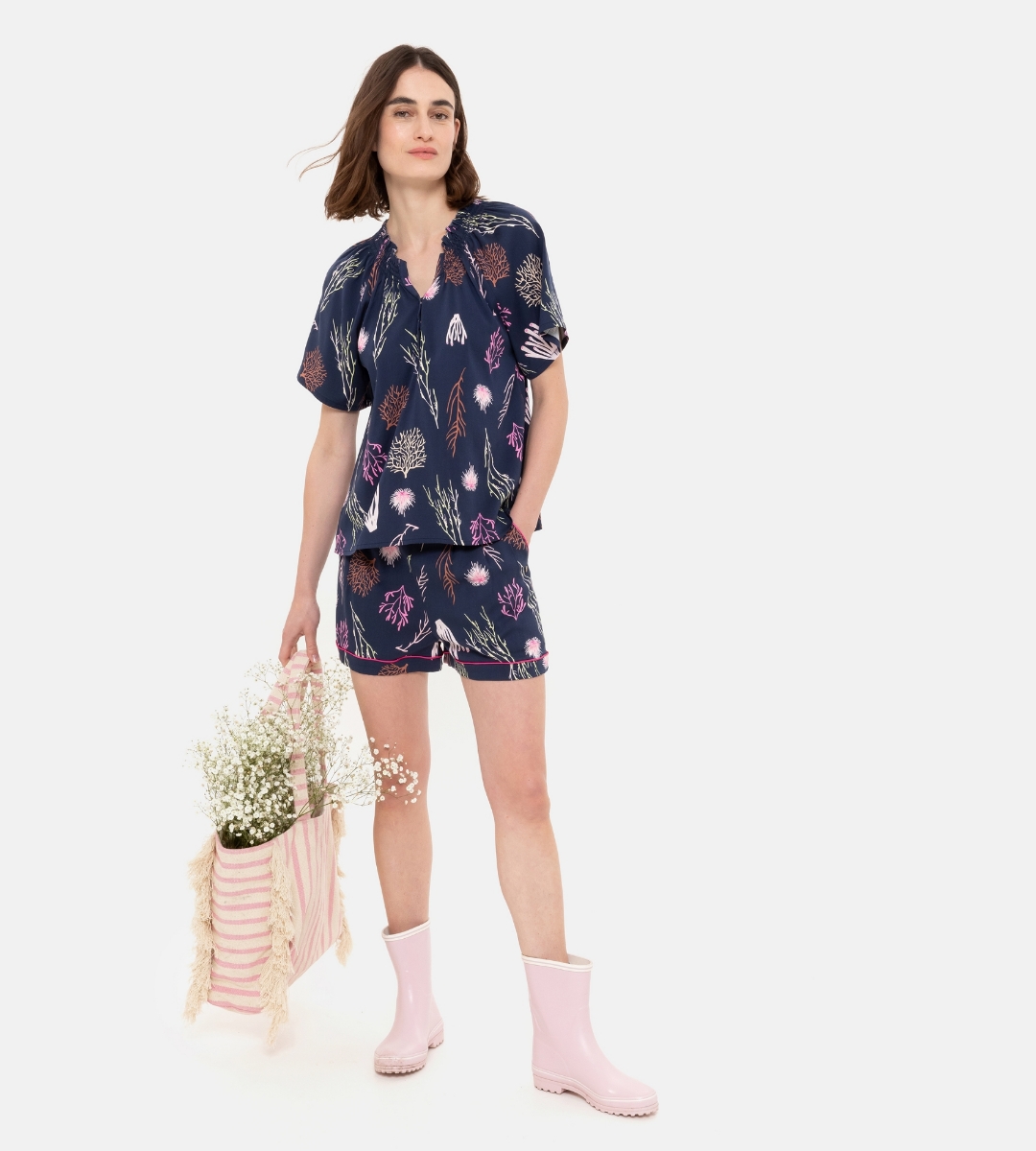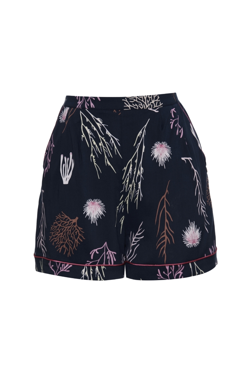 - Viskoz şort-Tlj - 995-Lacivert Çiçek Desen